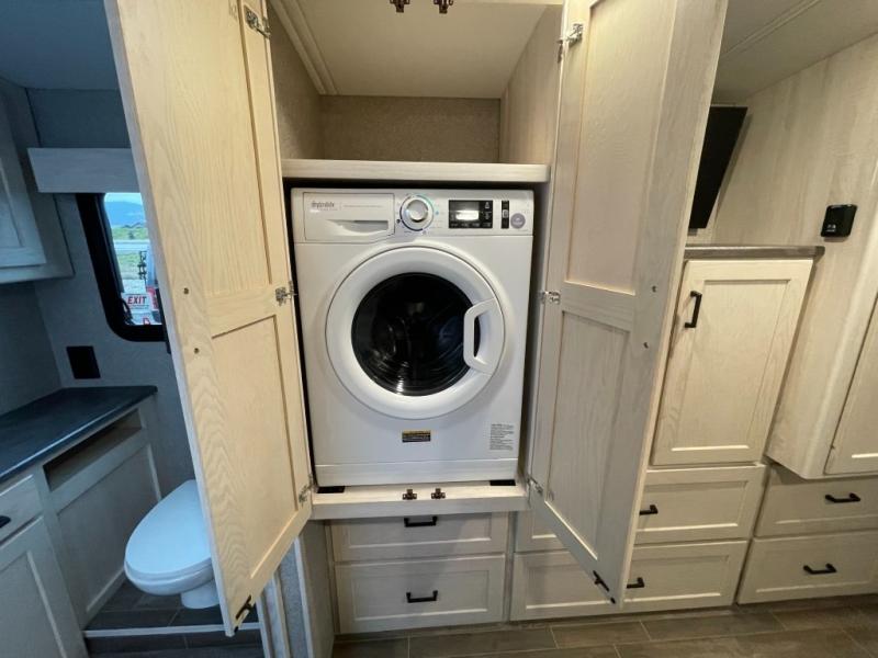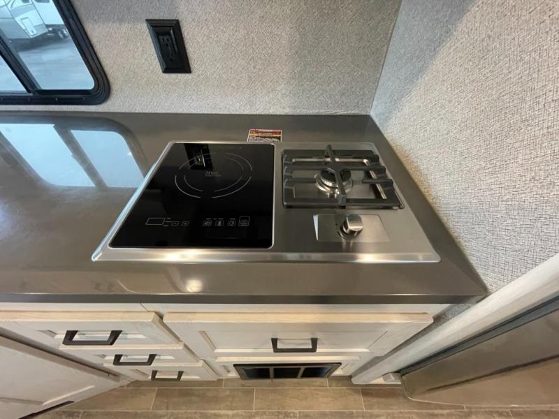 Traveling with your family or larger group will be so easy in this spacious Adventurer Class A gas motorhome. The full and half bath are sure to come in handy, and you'll find plenty of seating space for everyone with the extendable sectional sofa. Once the chef has prepared lunch on the gas/induction range top, the kids can enjoy it at the BenchMark dinette, and the adults can take their plate outside to sit under the 16' power awning. Whether you're watching a movie on the 39" HDTV or just enjoying the glow of the electric fireplace, you will truly enjoy your time spent in this coach. The master bedroom includes a queen bed slide, dual wardrobes and nightstands, and a space to add an optional washer and dryer if you choose!
