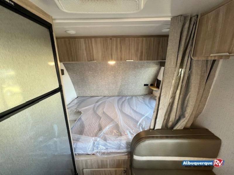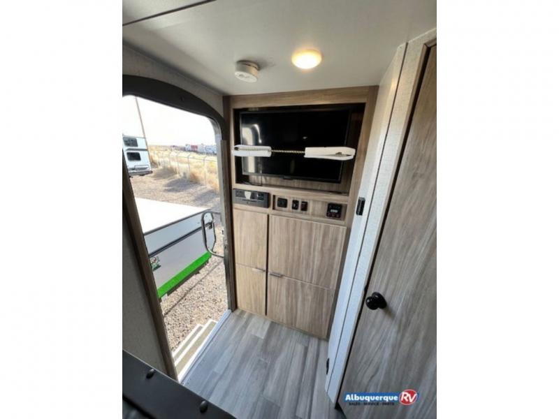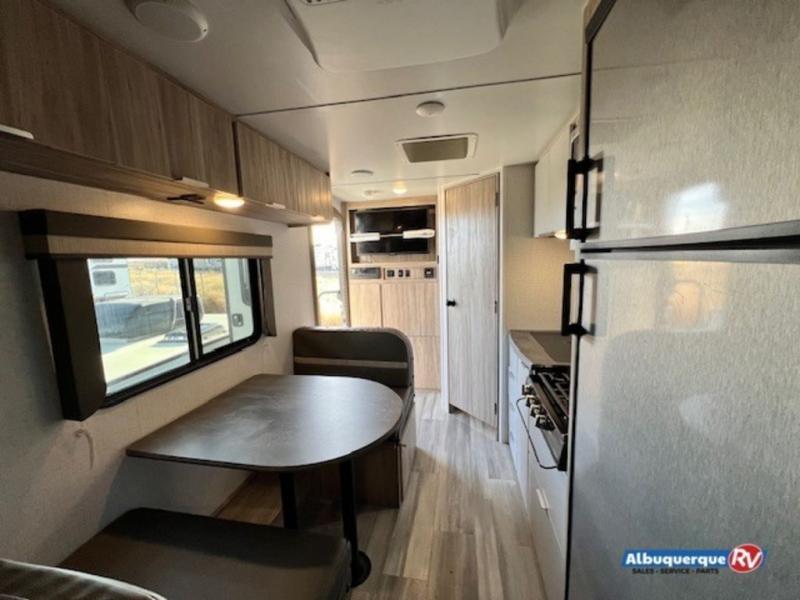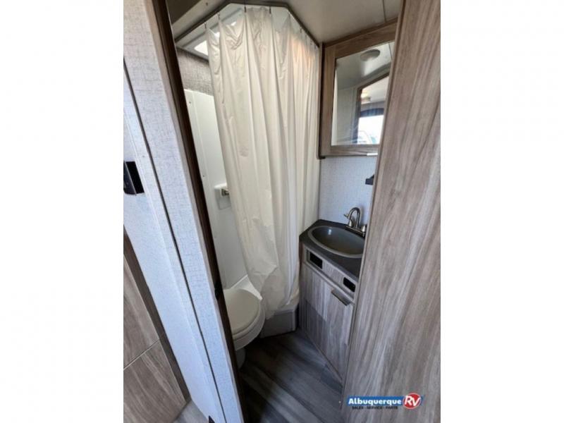 You and your spouse can head out to the best adventure with this travel trailer! Start each morning feeling refreshed after sleeping on the front RV queen bed and get ready for your day in the rear corner bathroom which features a 24" x 24" neo-angled shower with a skylight above it for natural lighting as you get ready. The 32" x 74" booth dinette is not only great for eating your meals at or playing games, but can also transform into an extra sleeping space for a guest. End your nights by relaxing underneath the power awning with LED lights and your favorite tunes playing through the patio speakers!