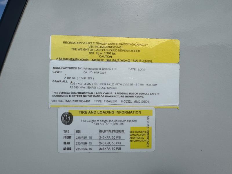 Used 2021 Winnebago Industries Towables Micro Minnie 2108DS Travel Trailer