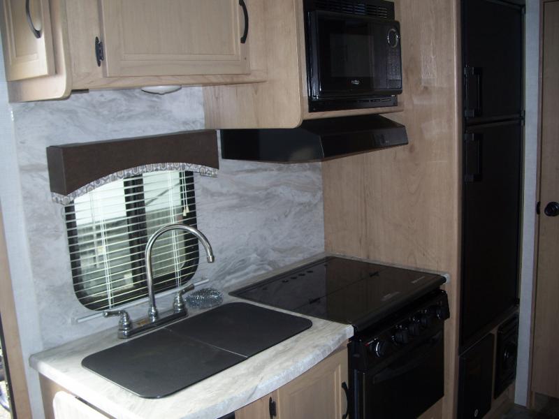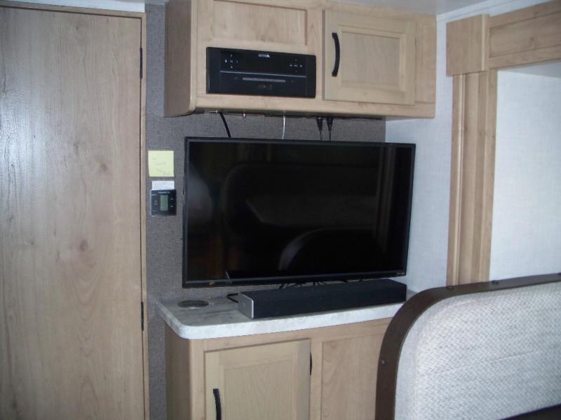 If you're looking for versatility then you need this travel trailer! Depending on the time of day you enter will determine whether you see the Murphy bed or the sofa up front. The 44" x 72" booth dinette slide can be used for eating your meals, playing games, and sleeping space at night. The full rear bathroom is equipped with everything you will need to freshen up each morning and provides a skylight above the shower and a wardrobe for your clothes and linens, plus a pocket door to save space. The LED TV is conveniently located so you can watch your favorite shows, plus the pantry offers a place to store your snacks and such for easy access. And the cook will love all the amenities to make meals including the handy flip-up counter.