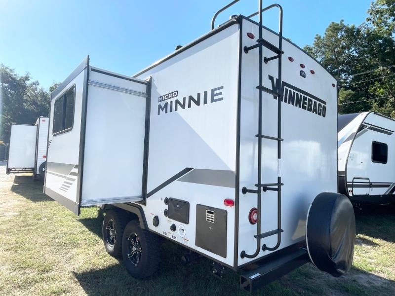 Start out on your boundless journey in one of these Winnebago Industries Towables Micro Minnie travel trailers! Towing is made simple with the 7' width to keep your Micro Minnie in your rear-view mirror and can turn at a snap. They don't lack in features although they are compact in size. The spacious galley with the sink, the refrigerator, the cooktop, and even a microwave allow you to cook without compromise. You will not only enjoy entertainment indoors with the LED TV, the AV system, the WiFi prep, and the wireless cell phone charger, but also outdoors with the patio speakers and the power awning with LED lighting. Each model comes with flexible exterior storage to make packing quick and easy. The extreme weather foil wrapping, the NXG engineered chassis, and the TPO roof ensures you will have years of fun with one of these!