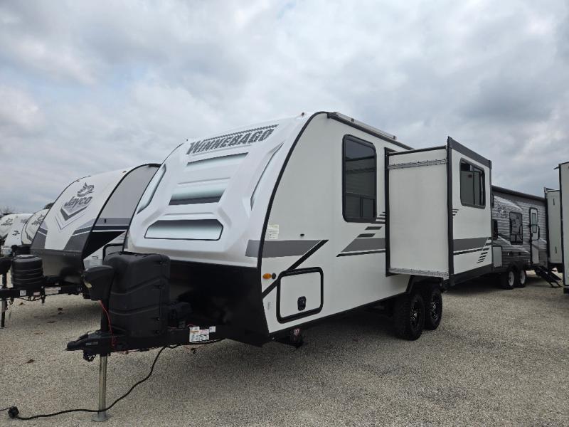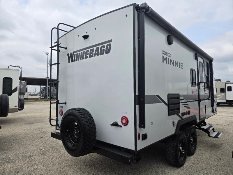 Start out on your boundless journey in one of these Winnebago Industries Towables Micro Minnie travel trailers! Towing is made simple with the 7' width to keep your Micro Minnie in your rear-view mirror and can turn at a snap. They don't lack in features although they are compact in size. The spacious galley with the sink, the refrigerator, the cooktop, and even a microwave allow you to cook without compromise. You will not only enjoy entertainment indoors with the LED TV, the AV system, the WiFi prep, and the wireless cell phone charger, but also outdoors with the patio speakers and the power awning with LED lighting. Each model comes with flexible exterior storage to make packing quick and easy. The extreme weather foil wrapping, the NXG engineered chassis, and the TPO roof ensures you will have years of fun with one of these!