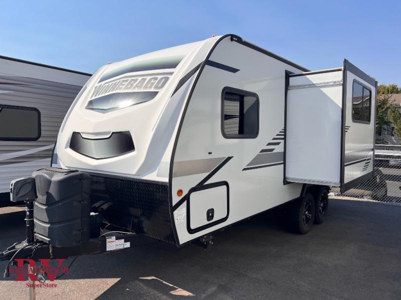 Start out on your boundless journey in one of these Winnebago Industries Towables Micro Minnie travel trailers! Towing is made simple with the 7' width to keep your Micro Minnie in your rear-view mirror and can turn at a snap. They don't lack in features although they are compact in size. The spacious galley with the sink, the refrigerator, the cooktop, and even a microwave allow you to cook without compromise. You will not only enjoy entertainment indoors with the LED TV, the AV system, the WiFi prep, and the wireless cell phone charger, but also outdoors with the patio speakers and the power awning with LED lighting. Each model comes with flexible exterior storage to make packing quick and easy. The extreme weather foil wrapping, the NXG engineered chassis, and the TPO roof ensures you will have years of fun with one of these!