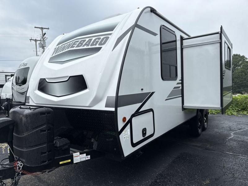 Start out on your boundless journey in one of these Winnebago Industries Towables Micro Minnie travel trailers! Towing is made simple with the 7' width to keep your Micro Minnie in your rear-view mirror and can turn at a snap. They don't lack in features although they are compact in size. The spacious galley with the sink, the refrigerator, the cooktop, and even a microwave allow you to cook without compromise. You will not only enjoy entertainment indoors with the LED TV, the AV system, the WiFi prep, and the wireless cell phone charger, but also outdoors with the patio speakers and the power awning with LED lighting. Each model comes with flexible exterior storage to make packing quick and easy. The extreme weather foil wrapping, the NXG engineered chassis, and the TPO roof ensures you will have years of fun with one of these!