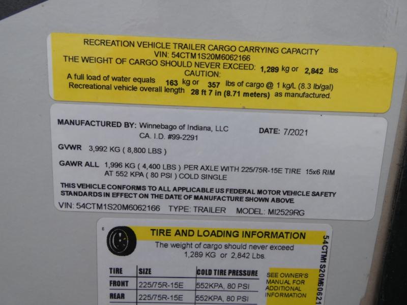 Used 2021 Winnebago Industries Towables Minnie 2529RG Travel Trailer