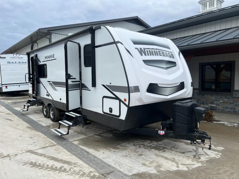 Every one of these Winnebago Industries Towables Minnie travel trailers have been designed for big outdoor adventure! Their compact space is maximized with a class-leading storage area that has 44 cu. ft. to pack in your gear. A NXG engineered frame and exterior fiberglass sidewalls with Azdel substrate hold these units together. The interiors come with creature comforts like a wireless cell phone charger, a spacious galley, and a queen bed with fitted bedspread and underbed storage. The stunning linoleum surfaces will be easy to clean and there is a light to brighten any trip. Come find your perfect model today!