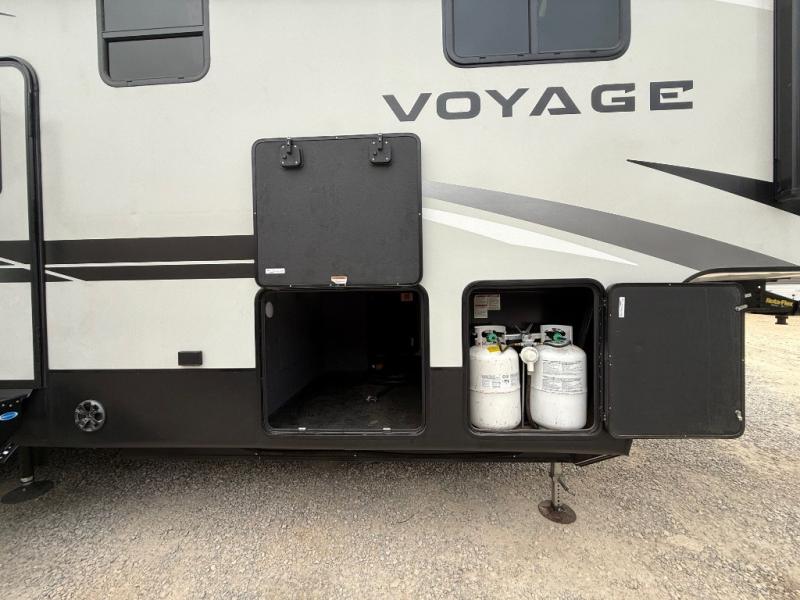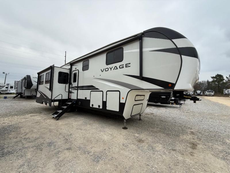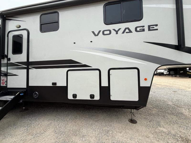 No voyage is better than the one taken in the Voyage travel trailer or fifth wheel from Winnebago Industries Towables! The Voyage has been built for explorers who dream of extended vacations that come with the comfort and connectivity of home. The Voyage has an excellent exterior with its gel-coat fiberglass front cap with integrated LED lighting, walk-on roof decking, electric awning with LED lighting, and exterior speakers. There are great modern features with the LED TV, USB charging ports, universal enclosed docking station, and DVD/CD/AM/FM dual-zone entertainment system with HDMI and Bluetooth. The Voyage is the escape you've been looking for!