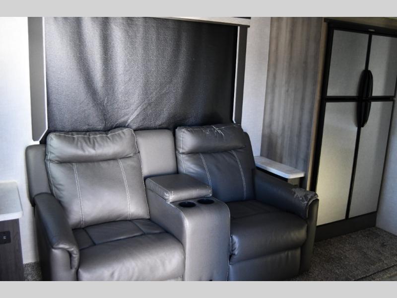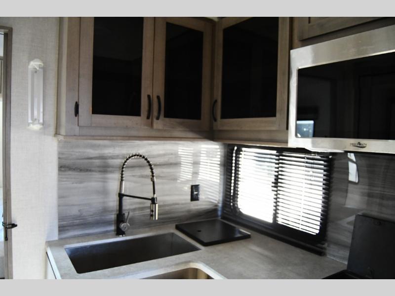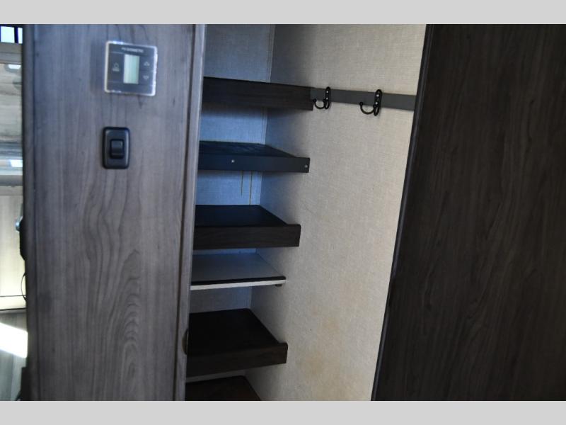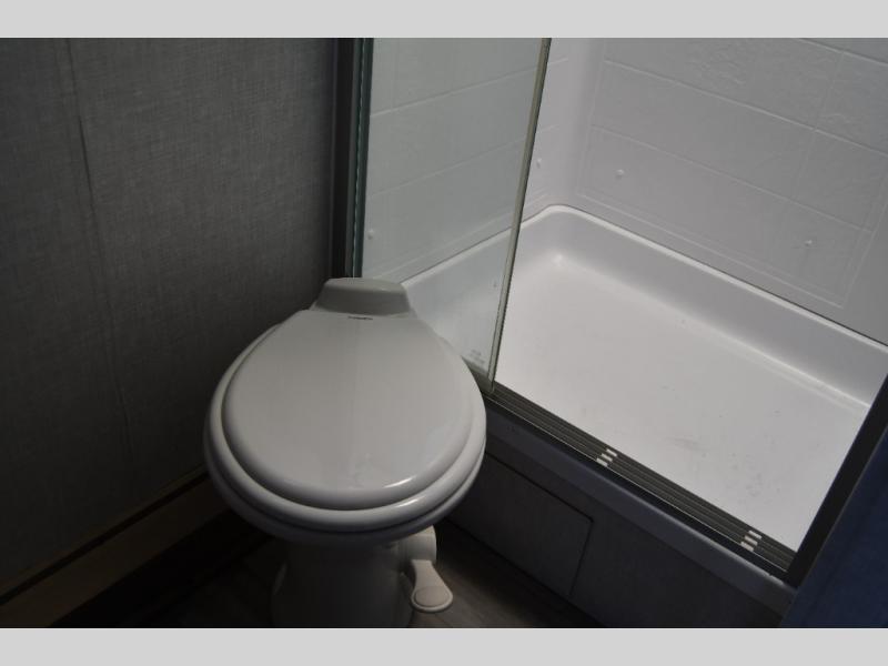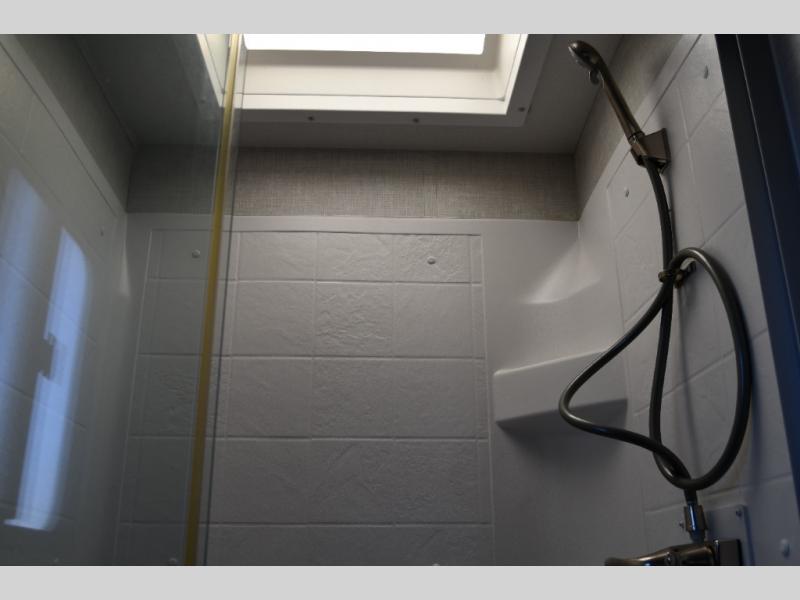 Just think about all of the excursions you can plan with this Voyage travel trailer! From backpacking in the mountains to lounging by the lake, you will be able to do it all when you have these home-like comforts to return to. The front private bedroom provides you with a queen-size bed so that every night is comfortable, and the full rear bathroom has a large skylight above the shower and a large medicine cabinet with mirror for your morning routine. Sit back on the tri-fold sofa and enjoy the view of the entertainment center. You can also reach into the pantry right next to you to grab a little snack if you get hungry.