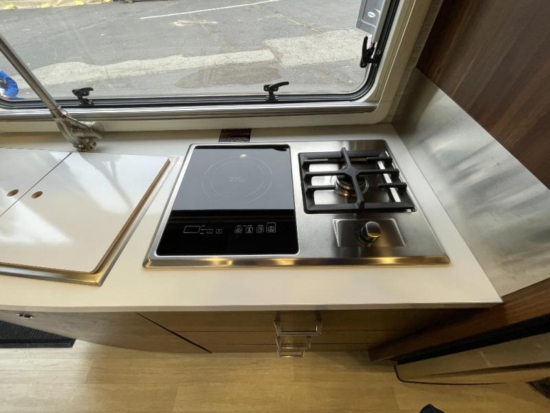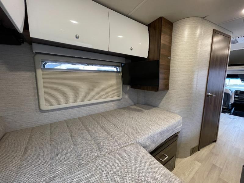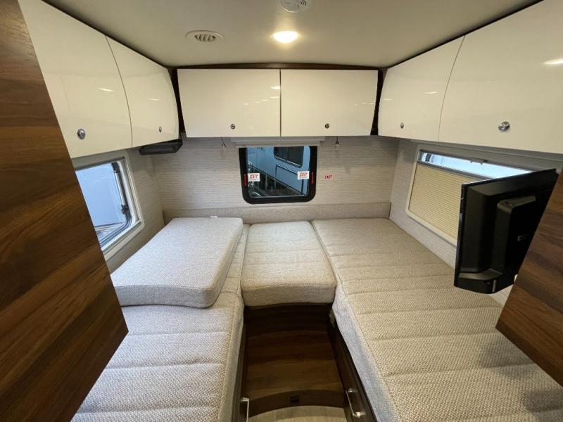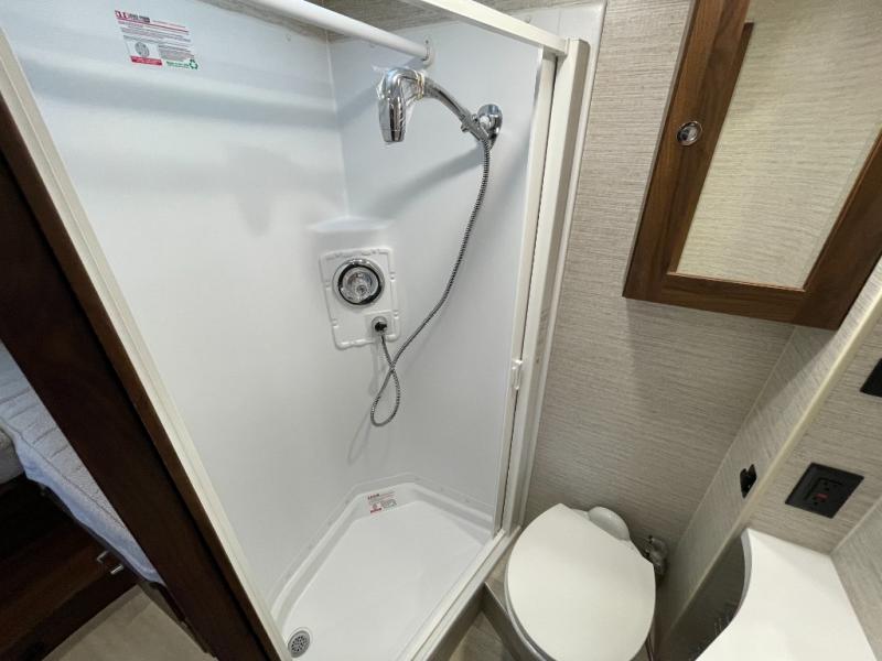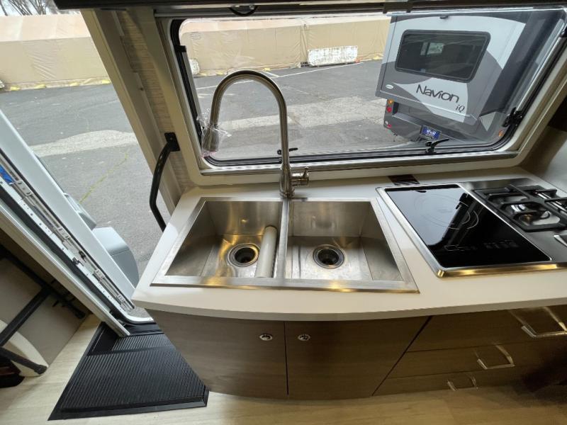 You will definitely want to be a part of any trip taken in this Navion Class C diesel motorhome! The interior is filled with comforts like the TruComfort+ sofa with table, the SuperShell Sleeper Deck above the cab, the two twin-size beds that can convert into a 74" x 87" Flex Bed, and the full bathroom with a shower skylight. The Anything Keeper drop-down storage above the bed is a convenient place to store some personal items, and the 110V/12V/USB charging stations will ensure that your electronics are ready to go when you are. Plus, with two HDTVs, you will always have an opportunity to stay entertained.