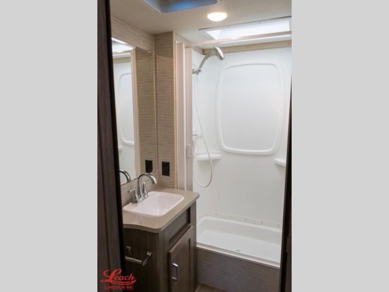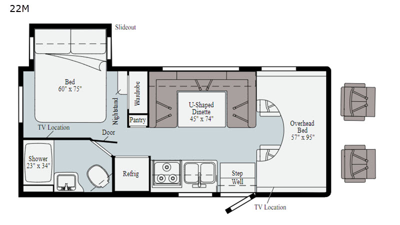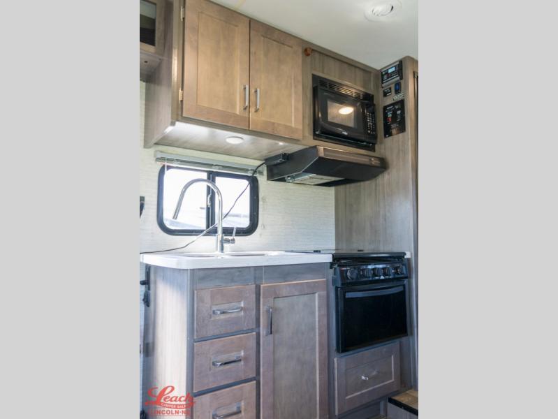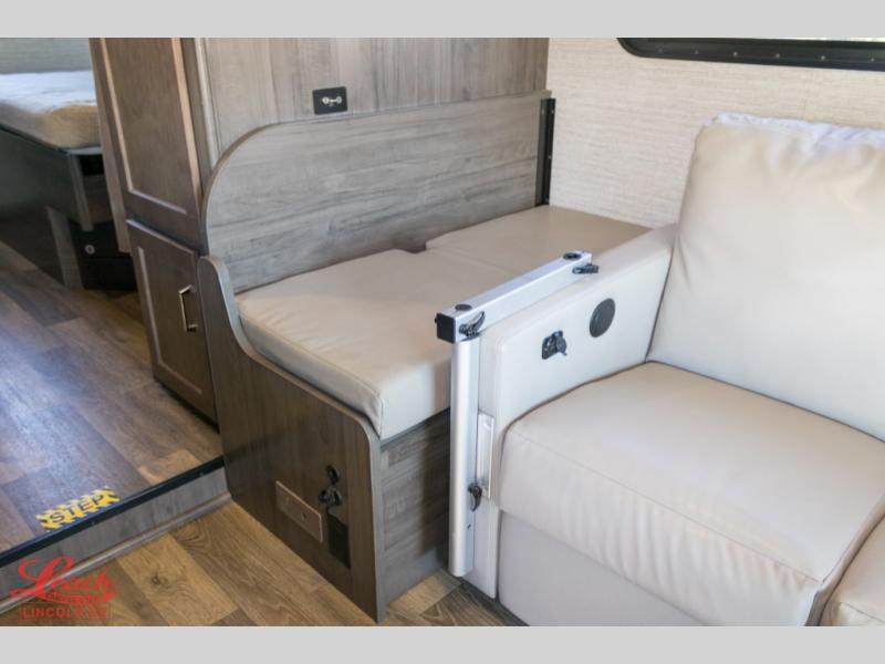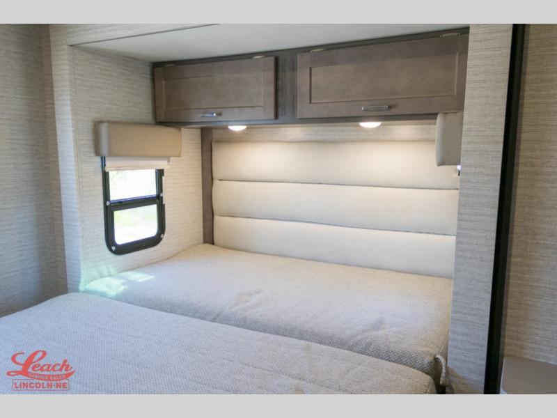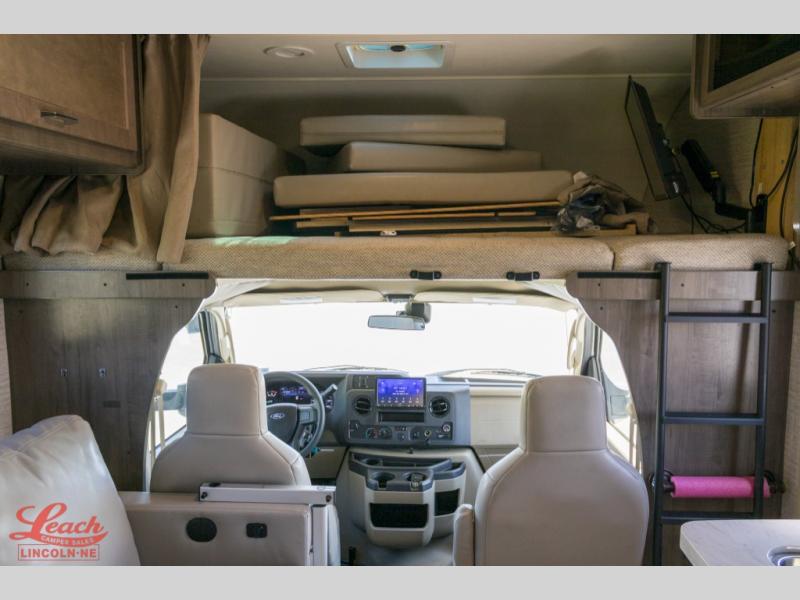 In this Spirit Class C gas motorhome, you will experience what it means to let your adventurous Spirit take you anywhere. Whether you're staying up late laughing together while relaxing on the custom recliner, or you are building an impenetrable fort for your imaginative children on the 57" x 95" bunk over the cab, you will be creating moments that will last a lifetime. The private bedroom is a cozy spot that includes a 60" x 75" bed, a TV location, and a large wardrobe giving you plenty of space to bring along all of your essentials, like your hiking boots and rain coat.