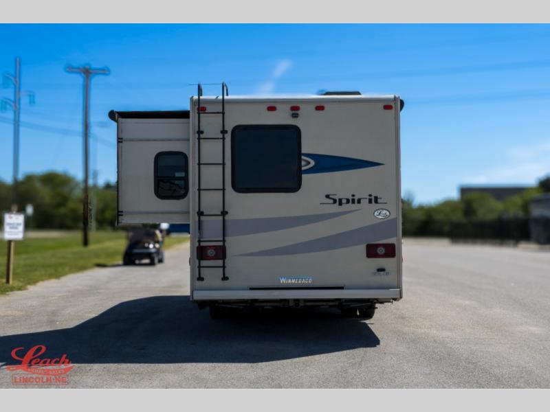 The Class C Winnebago Spirit motorhome is where lasting family memories begin. If your family enjoys spending as much time outdoors as possible, then you will love spending each evening underneath the powered patio awning sitting next to a blazing campfire as you gaze up at the night sky, and you can come inside afterwards to finish off the night watching your favorite movie on the 32" HDTV with DVD player. All of the features and specifications of the Spirit are backed by the legendary quality standards that you have grown to love from Winnebago, and every Spirit comes with a large lighted trunk storage compartment that is perfect for storing a set of golf clubs or a bag of soccer balls. That's why the Spirit is the perfect choice for families who are constantly on the go.