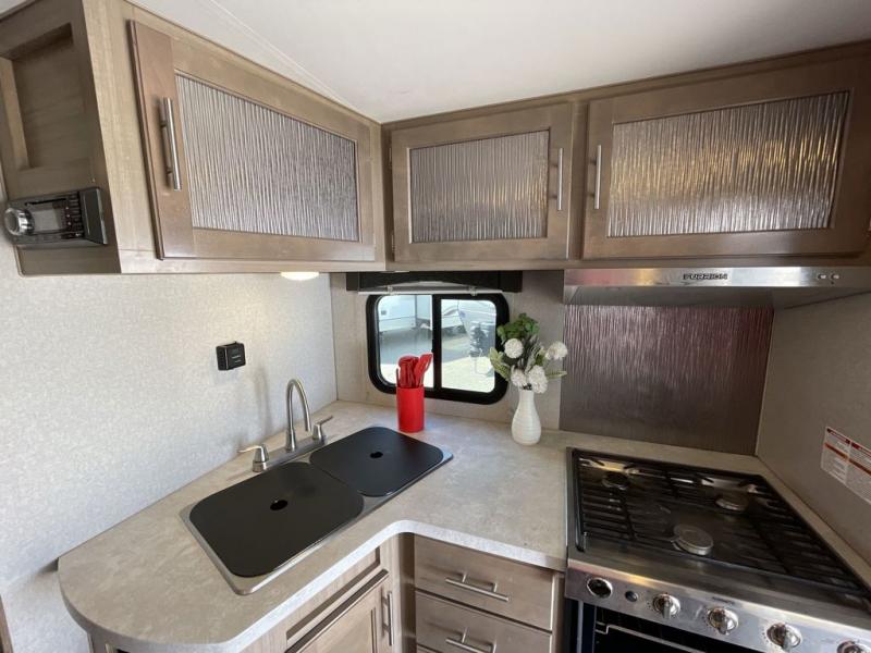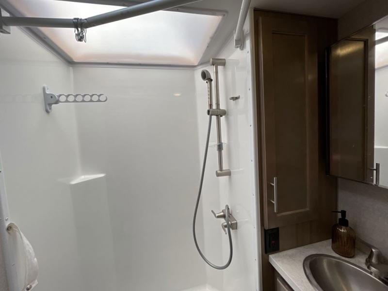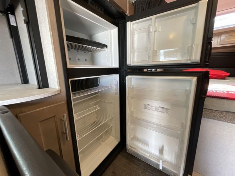 If you have a long bed truck then you need this truck camper for your next getaway! The super U-shaped dinette and Dometic 7 cu. ft. refrigerator slide opens up the living space and you can even add an optional power bunk for extra sleeping space. There is also a front California king bed to lay your head on at night with a nightstand and a sliding wardrobe door for your clothes. Prepare delicious home cooked meals for everyone with the sealed three burner cooktop with residential grate and easily clean up with the stainless steel double bowl sink. Everyone will stay squeaky clean with the separate one-piece fiberglass shower in the dry bath and there is a full roof skylight for added natural lighting as you get ready.