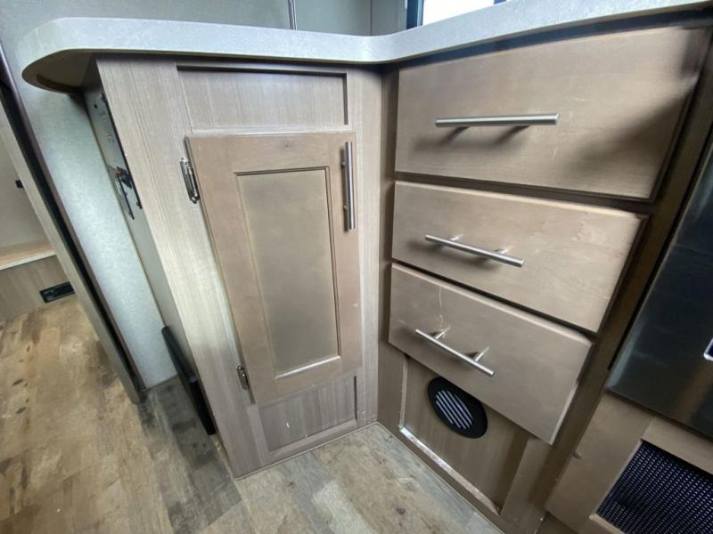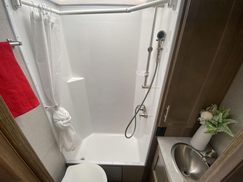 If you have a long bed truck then you need this truck camper for your next getaway! The super U-shaped dinette and Dometic 7 cu. ft. refrigerator slide opens up the living space and you can even add an optional power bunk for extra sleeping space. There is also a front California king bed to lay your head on at night with a nightstand and a sliding wardrobe door for your clothes. Prepare delicious home cooked meals for everyone with the sealed three burner cooktop with residential grate and easily clean up with the stainless steel double bowl sink. Everyone will stay squeaky clean with the separate one-piece fiberglass shower in the dry bath and there is a full roof skylight for added natural lighting as you get ready.