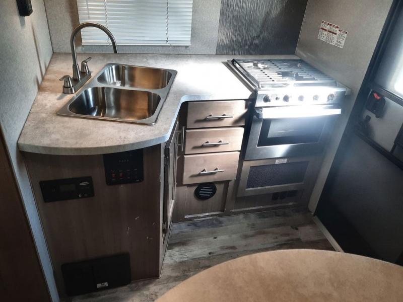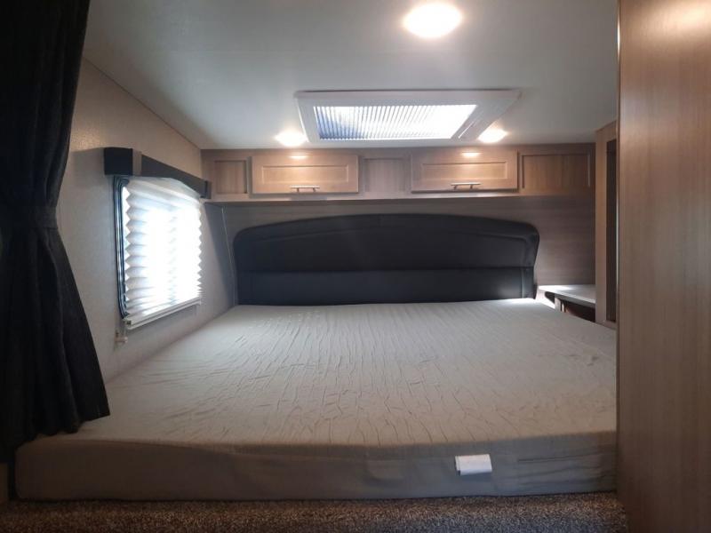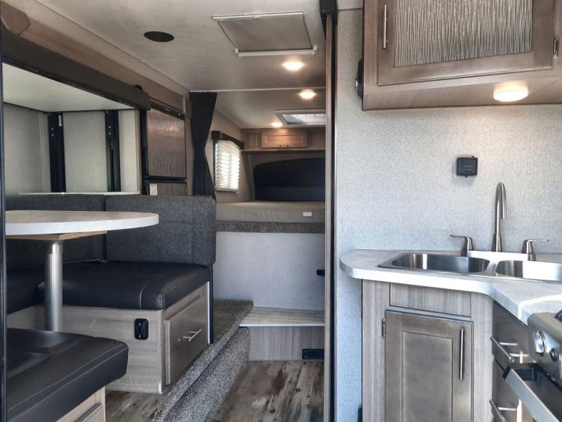 If you have a long bed truck then you need this truck camper for your next getaway! The super U-shaped dinette and Dometic 7 cu. ft. refrigerator slide opens up the living space and you can even add an optional power bunk for extra sleeping space. There is also a front California king bed to lay your head on at night with a nightstand and a sliding wardrobe door for your clothes. Prepare delicious home cooked meals for everyone with the sealed three burner cooktop with residential grate and easily clean up with the stainless steel double bowl sink. Everyone will stay squeaky clean with the separate one-piece fiberglass shower in the dry bath and there is a full roof skylight for added natural lighting as you get ready.