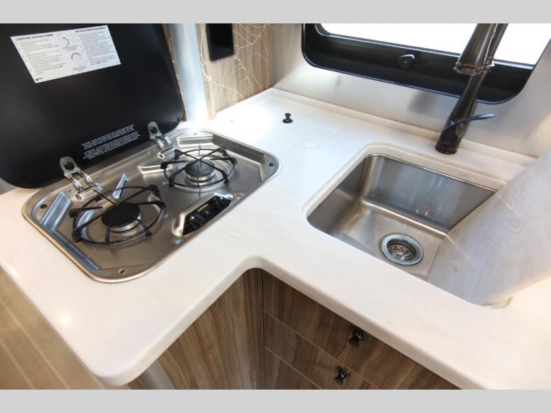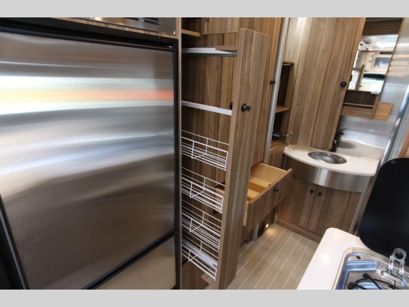 With the Atlas Class B+ diesel motorhome by Airstream, you not only get an enduring Airstream design, conveniences and luxury features, you also get the proven Mercedes-Benz safety systems and performance. The coach is built with Azdel composite roof, floor, and wall material, a vacuum-bonded aluminum framed floor, radius walls, a fiberglass crowned roof for extra headroom, trimless smooth fiberglass body seams, and molded fiberglass front and rear caps. The main cabin offers adjustable LED lighting, flush-mount cabinet hardware and soft close doors, a Froli ergonomic bed support system for a good night's sleep, Ultraleather seating, USB charging ports for your electronics, marine woven synthetic flooring, and matte finish laminate cabinetry to mention a few highlights. When you are wanting quality and craftmanship, and a well-traveled life, choose the Atlas and never turn back!