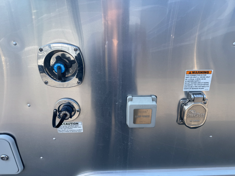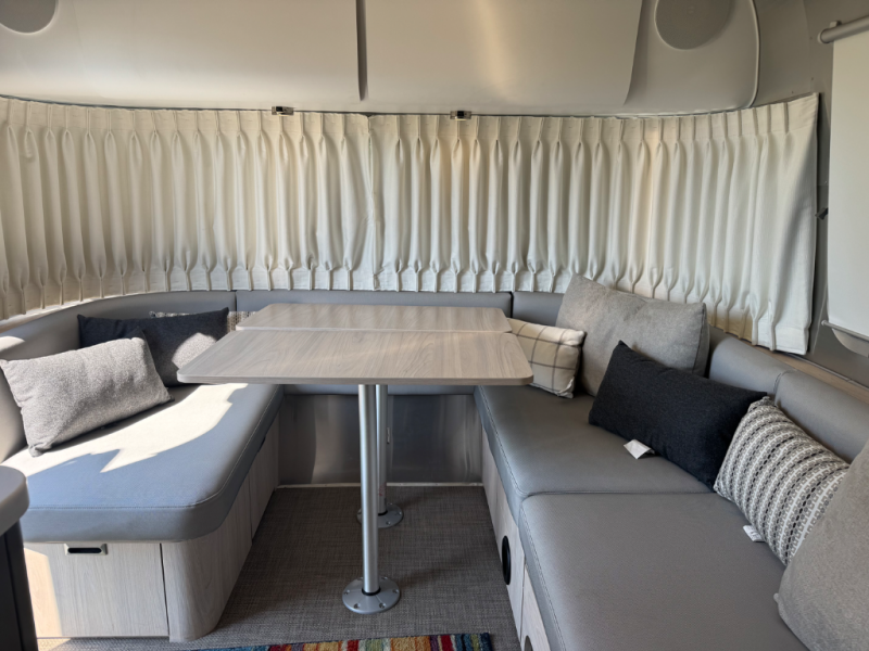 Airstream Globetrotter travel trailer 27FB Twin highlights: Twin Beds L-Shaped Lounge Separated Bathroom Seamless Composite Flooring Exterior Shower You will find comfort and luxury all throughout this travel trailer! From the front twin beds with an AdaptaFlex memory foam mattress, nightstands on either side, and a LG LED TV to the rear L-shaped lounge that you can enjoy your meals at and convert into an extra sleeping space. The separated bathroom has a private toilet and vanity together across from an independent shower with a seat to freshen up each morning. You can prepare your best meals in the ultra-modern kitchen with the stainless steel three burner cooktop, the oven, the deep stainless steel Moen sink, and the DuPont Corian countertops will be easy to clean, plus they have multifunctional storage bins that are flush to the surface behind the sink. Each one of these Airstream Globetrotter travel trailers are built to last a lifetime with a structural frame and durable fabrics! European inspired and American made with a minimalist design that includes crisp, clean lines and delicate neutral colors for a sophisticated beauty with soft curves, panoramic windows, wrap-around upholstery, and backlighting. The HITCH seating upholstery has a fine woven texture, a subtle metallic tip print, and a distinctive two-tone feel, as well as durable and stain resistant. You won't have to go far when charging your electronics thanks to the strategically placed USB and 110V outlets throughout. The QuietStream ducted A/C system can quickly cool the inside and also has a heat pump to pull ambient heat from the air. Come choose your favorite model today! Visit us at Campers Inn Signature RV today!