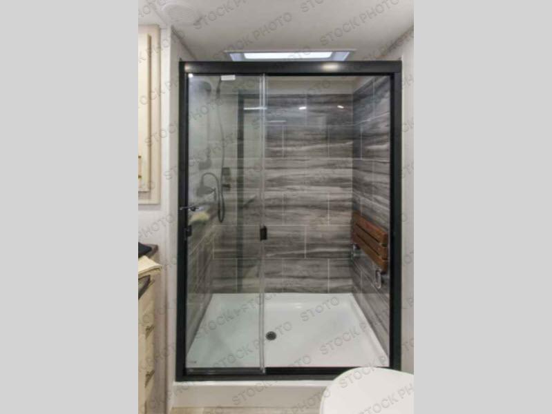 With any Paradigm fifth wheel by Alliance RV, you will experience the next generation advanced frame technology with heavy duty performance running gear. The Benchmark chassis features solid steel 10" l-beam main rails with a 2" torsion tube welded where the running gear attaches, drop frame storage area, flush upper deck design, reinforced goose neck area and a Rota-Flex pin box. The six-point hydraulic auto leveling is faster, stronger and quieter allowing you to enjoy more time away, and the PVC roof is more puncture resistant, ultra bright white and more solar reflective to help keep your fifth wheel cool. The triple 13,500 BTU A/Cs are ultra quiet, independently controlled direct flow A/C units that maximize cooling capacity, plus the 40,000 BTU furnace has flex ducts connected to formed ducts in the floor, and there are dedicated heat vents into the basement and underbelly to keep the tanks and your gear cozy warm during the cooler seasons. Choose luxury, choose convenience, choose to own the best, a Paradigm!