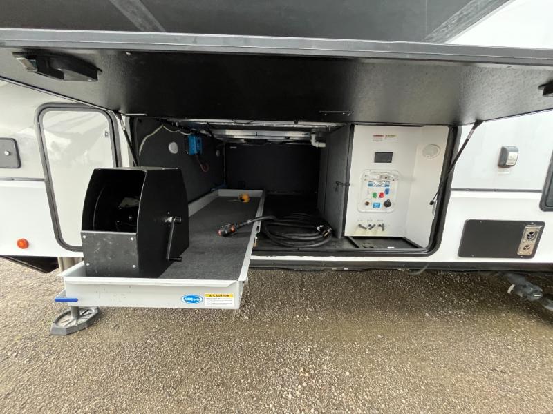 With any Paradigm fifth wheel by Alliance RV, you will experience the next generation advanced frame technology with heavy duty performance running gear. The Benchmark chassis features solid steel 10" l-beam main rails with a 2" torsion tube welded where the running gear attaches, drop frame storage area, flush upper deck design, reinforced goose neck area and a Rota-Flex pin box. The six-point hydraulic auto leveling is faster, stronger and quieter allowing you to enjoy more time away, and the PVC roof is more puncture resistant, ultra bright white and more solar reflective to help keep your fifth wheel cool. The triple 13,500 BTU A/Cs are ultra quiet, independently controlled direct flow A/C units that maximize cooling capacity, plus the 40,000 BTU furnace has flex ducts connected to formed ducts in the floor, and there are dedicated heat vents into the basement and underbelly to keep the tanks and your gear cozy warm during the cooler seasons. Choose luxury, choose convenience, choose to own the best, a Paradigm!