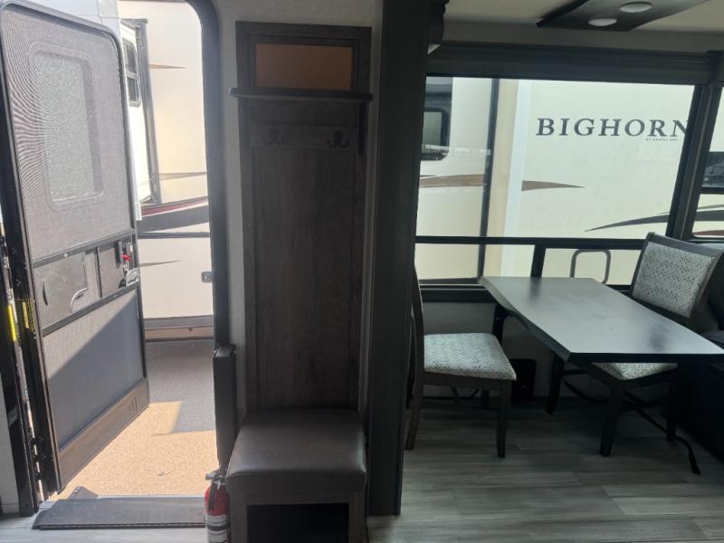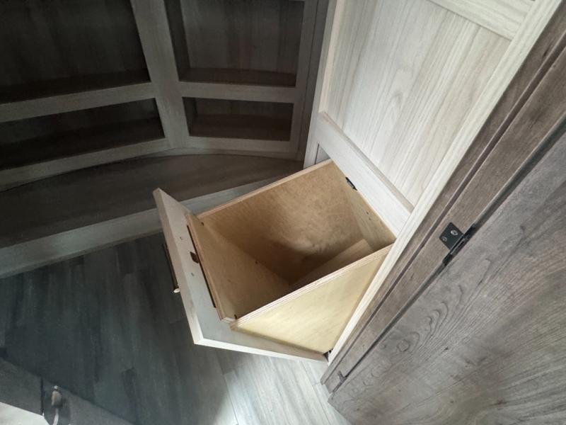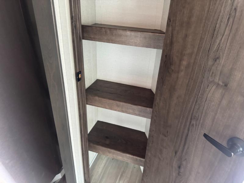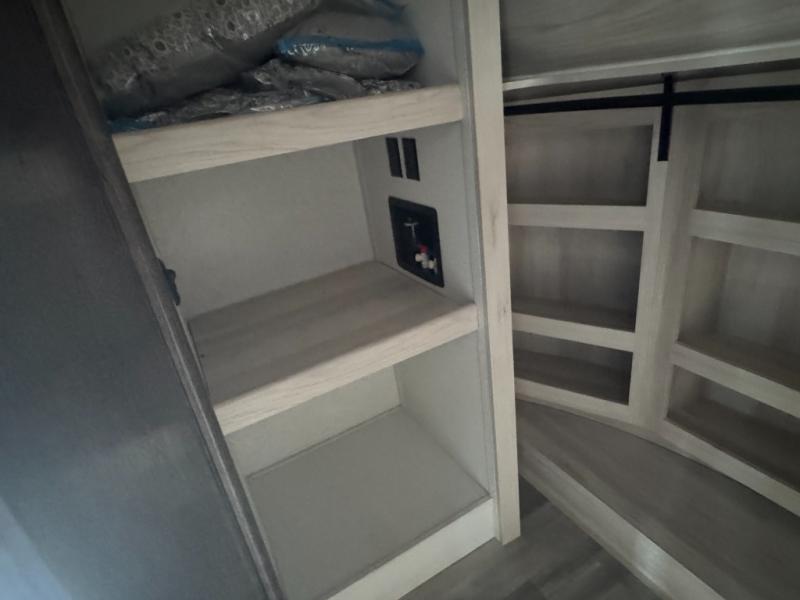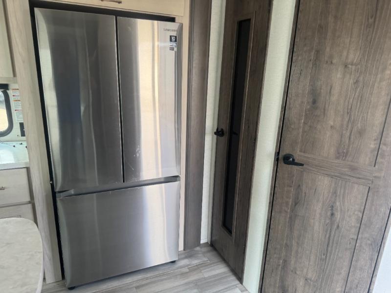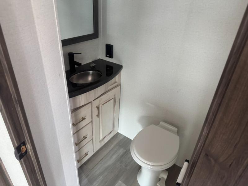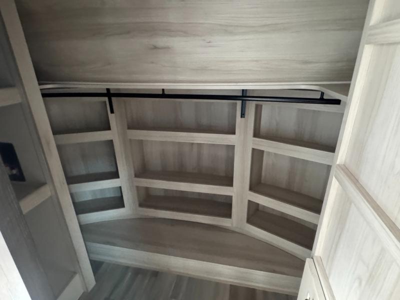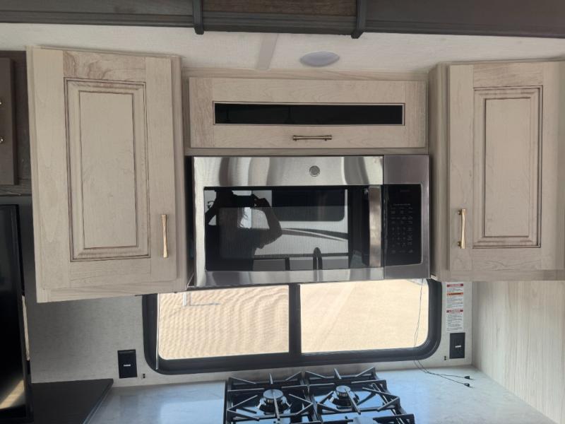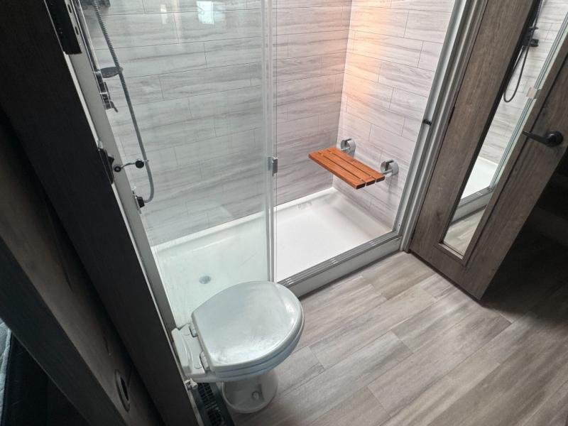Whether you decide to be a full-timer or a long-trip traveler, this Paradigm offers so many comforts and conveniences you will love seeing nature while under the two awnings with only a few steps to get back inside to rest and relax in your own spacious fifth wheel! The large full bathroom might be the reason you decide to be a owner because you will have a large 61" x 30" shower to get cleaned up in, linen storage, and a walk-in closet with a hamper, shelves, and a space prepped for a washer/dryer option. The bedroom allows you to sleep like a king and gives you extra floor space with the two slides, and storage in the flip-top dresser and under the seat, plus you can watch the Smart TV. The space saving sliding doors offer style as well. The cook will love all the residential appliances, you can even choose the residential refrigerator option. The kitchen island gives you a stainless steel farm sink and a place to add a dishwasher option. The half bath is super convenient just like the entry sitting bench/coat rack and closet. And you can relax on the sleeper sofa or the dual recliner love seat. There is so much more to see!
