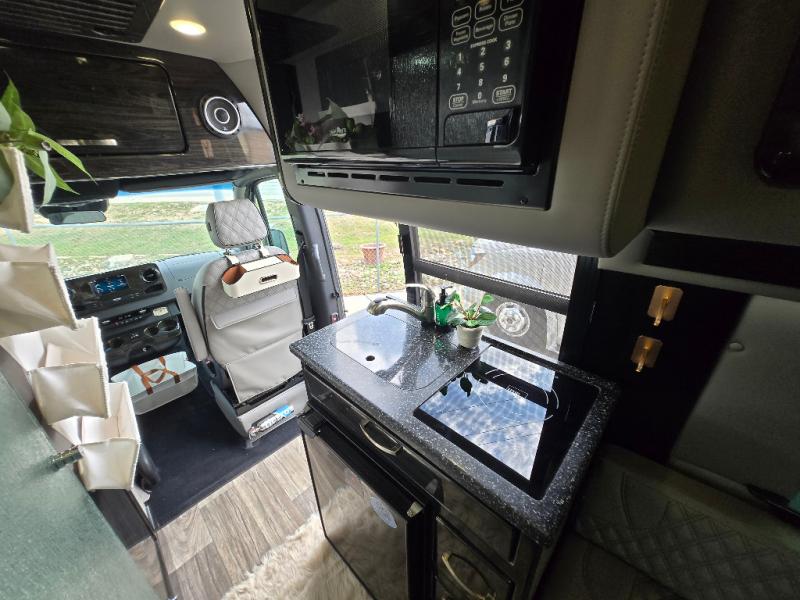 It won't be long before this American Patriot Class B gas motorhome becomes your favorite way to travel! Because of its easy maneuverability down the road compared to larger, bulkier RVs and its fully equipped interior, this coach is all that you could hope for. There are plenty of overhead cabinets to store your belongings, a kitchen that comes stocked with an induction cooktop and stainless steel microwave, an excellent lounge area with power sofa bed and rear HDTV, and a wet bath that comes with a retractable clothes line. If you need to get some work done, you can use the custom work station behind the driver's seat to do so.
