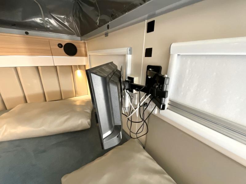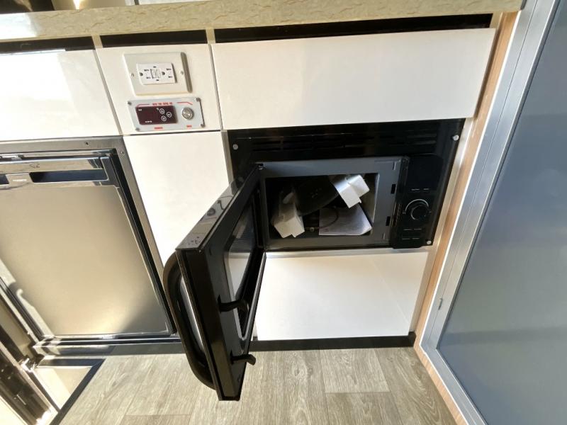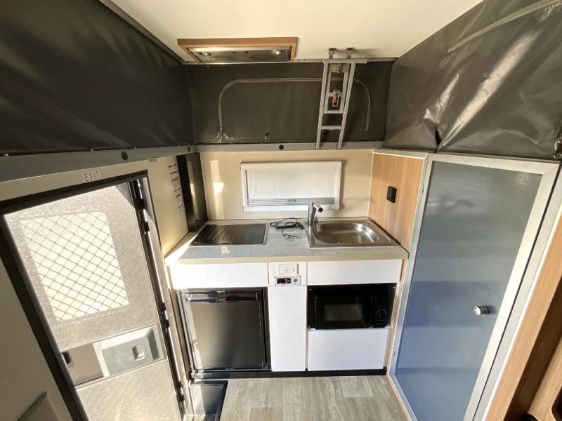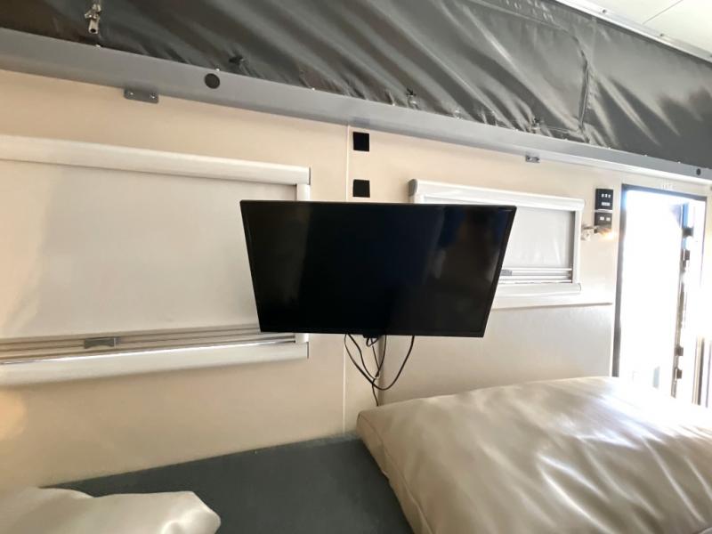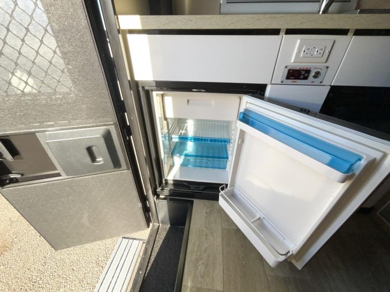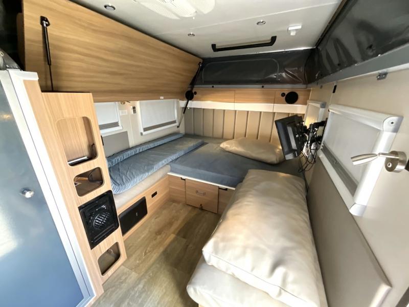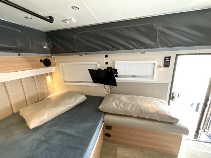 The Black Series Camper HQ Series travel trailers are one-of-a-kind! You won't find many more trailers like these out on the market. Built for the extreme camping enthusiast, the HQ Series is off-road and off-grid friendly. These rugged trailers have aluminum composite panels with added aluminum diamond plating for added strength and a stone guard/skid guard that adds protection for the bottom edge of the trailer. The Eurovision windows have a fly screen and privacy shades, and there is also a tri-lock security door with locking fly screen. An amazing feature that comes on each of the models is the outdoor kitchen which has a stainless steel sink slide, a propane stove, and a large prep table, and the roof-mounted solar panels are amazingly useful for those off-grid trips.