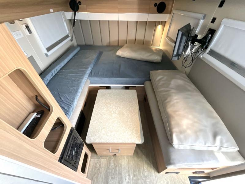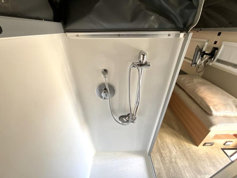 This HQ Series travel trailer is best suited for a group of four that want to get out and explore! You'll have all of your needs met with the wet bath and interior kitchen that comes with a three-burner stovetop, sink, microwave, and refrigerator, and you will also have comfortable sleeping spaces with the double-size bed, bunk bed, and convertible lounge with up-down table. The entertainment system comes with a CD/FM/iPod/Bluetooth/USB radio, two interior speakers, two exterior marine-grade speakers, and a 24" TV with DVD function which means that you'll be able to have many party nights. There is even an outdoor shower that you can use to rinse off your gear before you pack it away to head home.