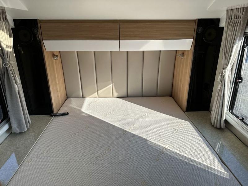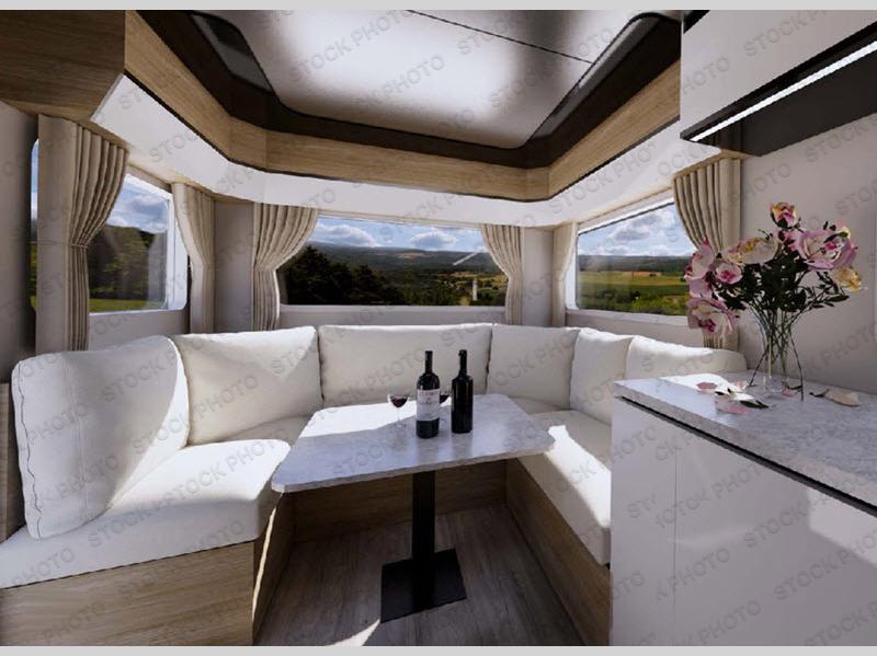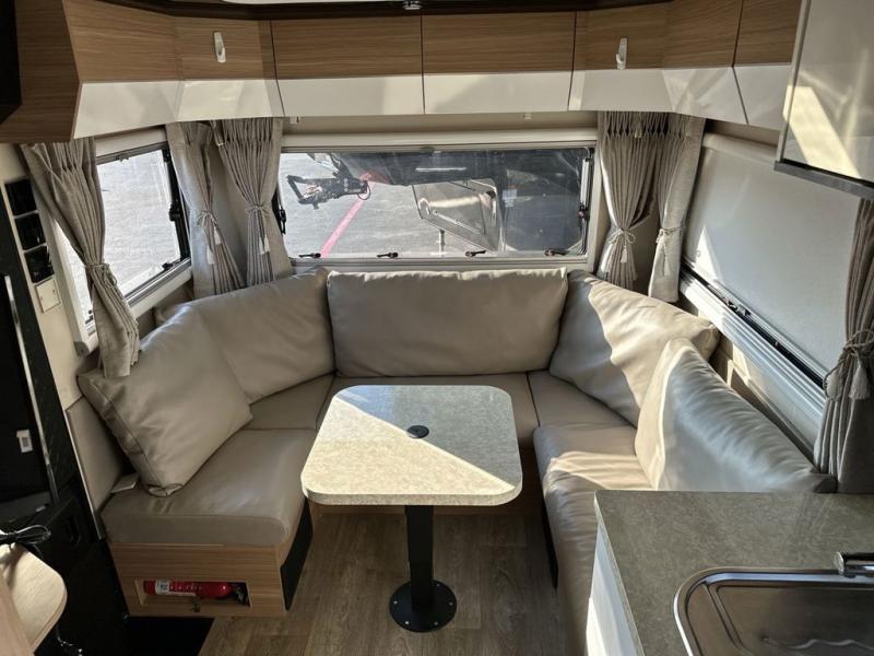 This travel trailer is the ultimate pinnacle of the HQ Series! With its aerodynamic design, this trailer embodies the perfect combination of elegance, strength, comfort, and durability. This trailer is a game changer, and it sets the new benchmark for the industry. You'll be able to have your own private bedroom with an RV queen bed so that you can relax in complete solitude, and the walk-through bathroom is directly adjacent to the bedroom which provides you with easy access as you go to get ready in the morning. The bedroom also has excellent storage with its bedside closets, multiple overhead storage bins, and bedside nightstands. The front of this trailer has a U-shaped lounge with adjustable table that can serve as a relaxing social area or a peaceful nighttime bed.