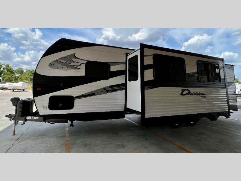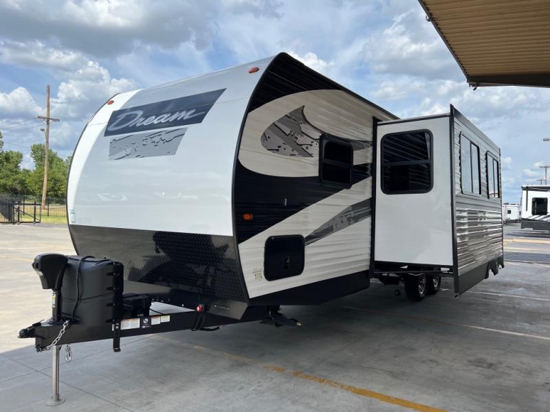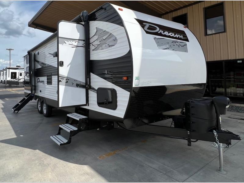 Stop dreaming about your favorite destinations and start traveling there with any one of these Chinook RV DREAM travel trailers! They have new contemporary graphics and are at an affordable price so you can still travel around the country. A diamond plate rock guard protects the front of the unit, the powder coated chassis protects the bottom, and the radius EPDM roof keeps the elements out of the unit. The rain gutters come with extended spouts to help keep the water away too. LED exterior lighting and LED interior lighting aids in your views day and night. You are sure to find the right model for your needs!