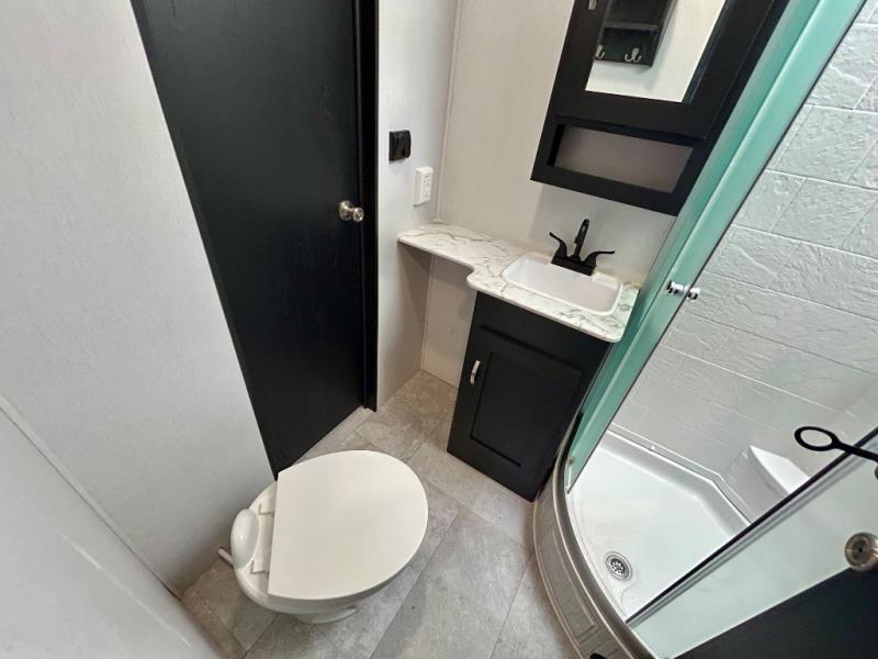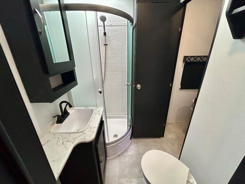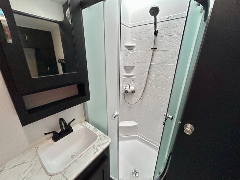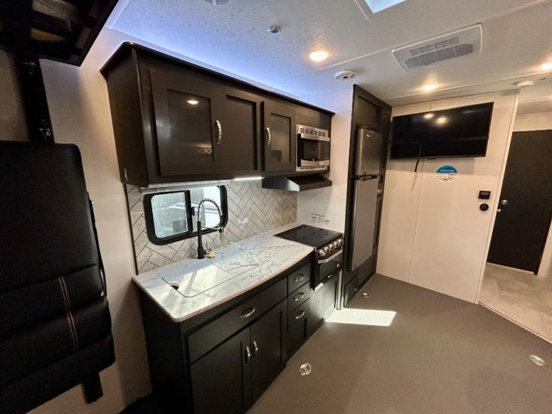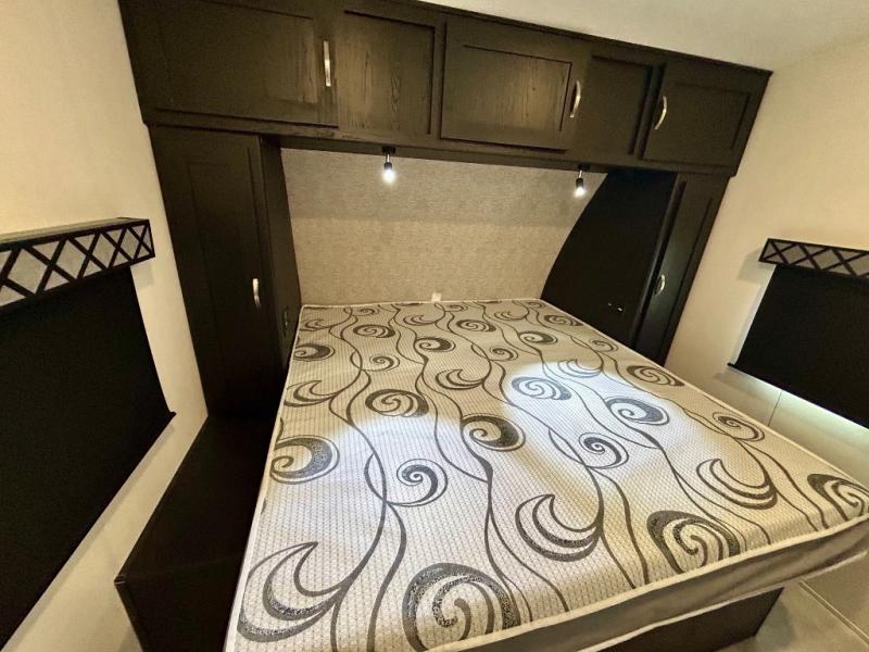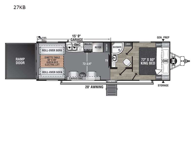 Load up everyone and your motorcycles, bicycles or off-road toys to enjoy some trail rides and overnight accommodations! You will find sleeping space for six people thanks to the electric queen bed with dual roll-over sofas underneath in the garage, and the walk-around king bed in the front master bedroom. You can keep your toys fueled and ready to go with the 30 gallon fuel station and the zero gravity ramp door will allow for easy loading and unloading. This travel trailer includes all the kitchen appliances to create meals each day and the dual entry bath is accessible from the front master bedroom and the hallway for your guests. You will also find a rear pull down screen, pull-down roller night shades to be able to sleep in late, and a solar package to help you stay off-grid.