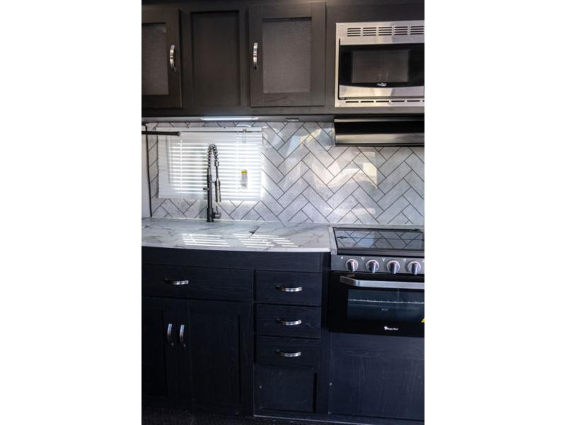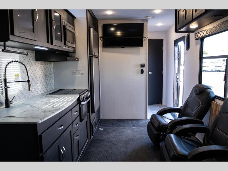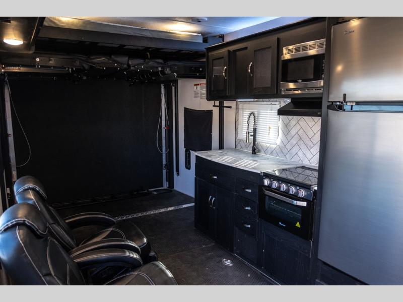 Load up everyone and your motorcycles, bicycles or off-road toys to enjoy some trail rides and overnight accommodations! You will find sleeping space for six people thanks to the electric queen bed with dual roll-over sofas underneath in the garage, and the walk-around king bed in the front master bedroom. You can keep your toys fueled and ready to go with the 30 gallon fuel station and the zero gravity ramp door will allow for easy loading and unloading. This travel trailer includes all the kitchen appliances to create meals each day and the dual entry bath is accessible from the front master bedroom and the hallway for your guests. You will also find a rear pull down screen, pull-down roller night shades to be able to sleep in late, and a solar package to help you stay off-grid.
