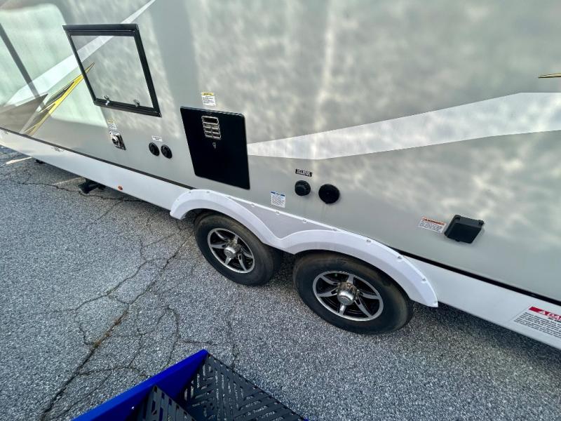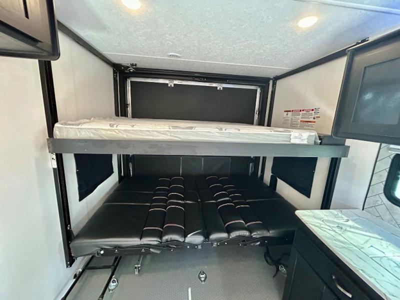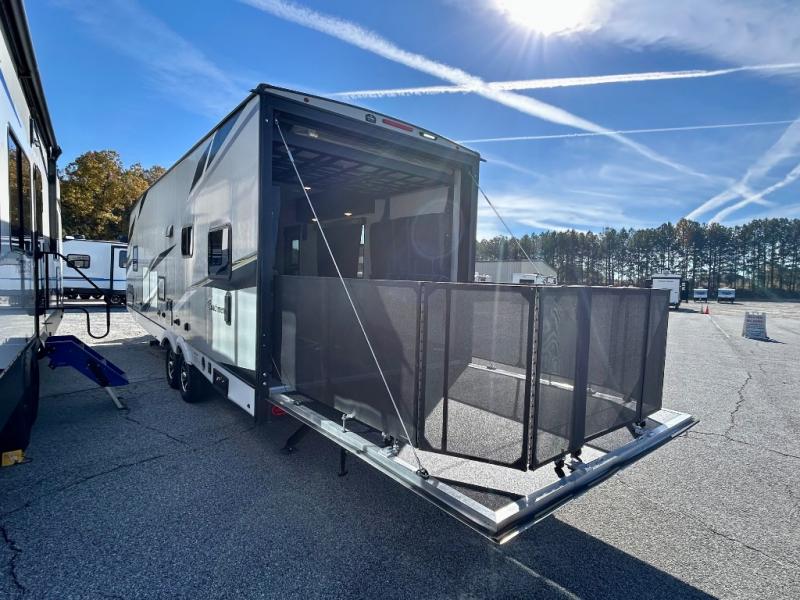 Load up everyone and your motorcycles, bicycles or off-road toys to enjoy some trail rides and overnight accommodations! You will find sleeping space for six people thanks to the electric queen bed with dual roll-over sofas underneath in the garage, and the walk-around king bed in the front master bedroom. You can keep your toys fueled and ready to go with the 30 gallon fuel station and the zero gravity ramp door will allow for easy loading and unloading. This travel trailer includes all the kitchen appliances to create meals each day and the dual entry bath is accessible from the front master bedroom and the hallway for your guests. You will also find a rear pull down screen, pull-down roller night shades to be able to sleep in late, and a solar package to help you stay off-grid.
