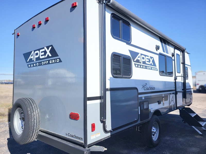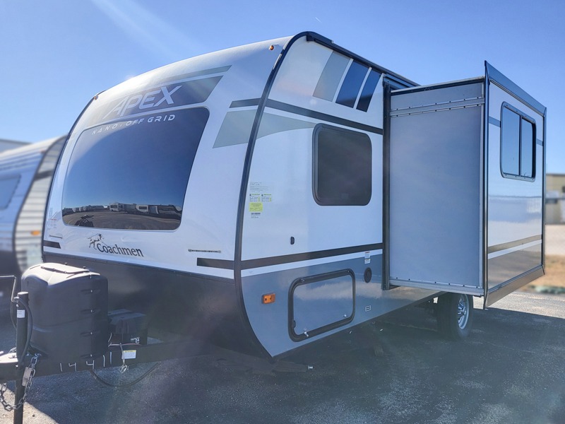 You will find comfort, convenience, and a sturdy construction with each of these Coachmen RV Apex Nano travel trailers! They are held together with an aluma-cage construction, vacuum-bonded Azdel fiberglass walls, an I-beam chassis, and a roof membrane with Dicor Crossflex, plus the powder coated frame is corrosion resistant. The Dexter E-Z lube axles and nitrogen filled radial tires will help you arrive safely. The mandatory Nano package comes with many features to make camp life better like magnetic baggage door catches, outside speakers, a digital TV antenna with cable hook-ups and WiFi capability, and a hot/cold outside shower to keep the dirt outside where it belongs. Come find the perfect model that fits your needs today!