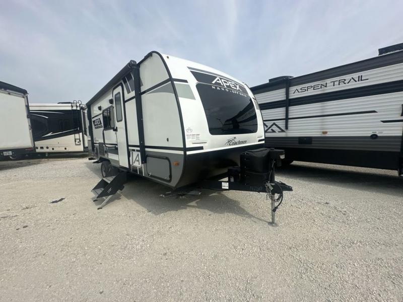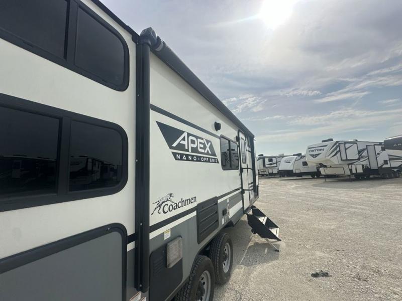 You will find comfort, convenience, and a sturdy construction with each of these Coachmen RV Apex Nano travel trailers! They are held together with an aluma-cage construction, vacuum-bonded Azdel fiberglass walls, an I-beam chassis, and a roof membrane with Dicor Crossflex, plus the powder coated frame is corrosion resistant. The Dexter E-Z lube axles and nitrogen filled radial tires will help you arrive safely. The mandatory Nano package comes with many features to make camp life better like magnetic baggage door catches, outside speakers, a digital TV antenna with cable hook-ups and WiFi capability, and a hot/cold outside shower to keep the dirt outside where it belongs. Come find the perfect model that fits your needs today!
