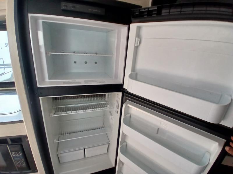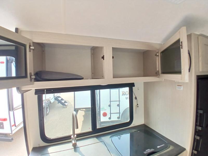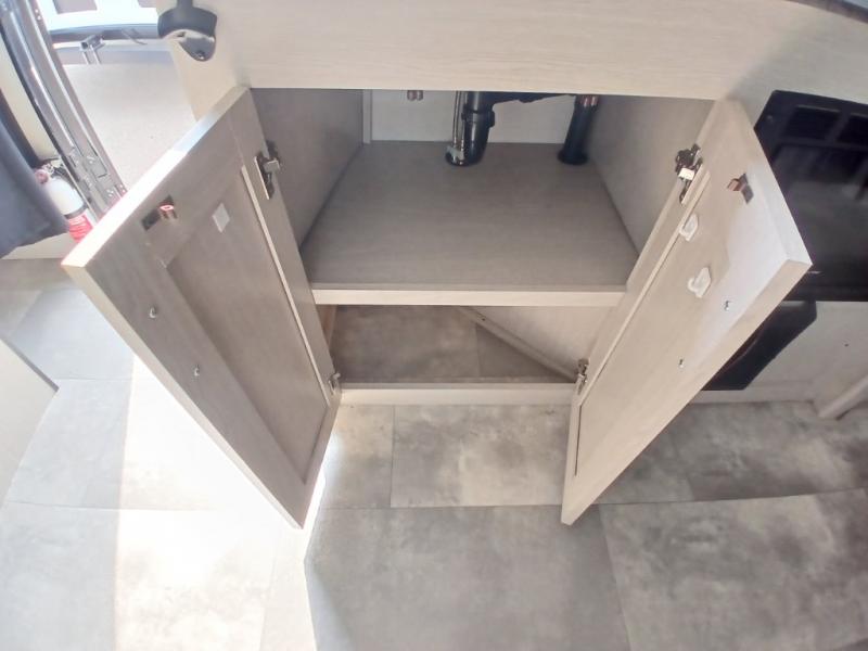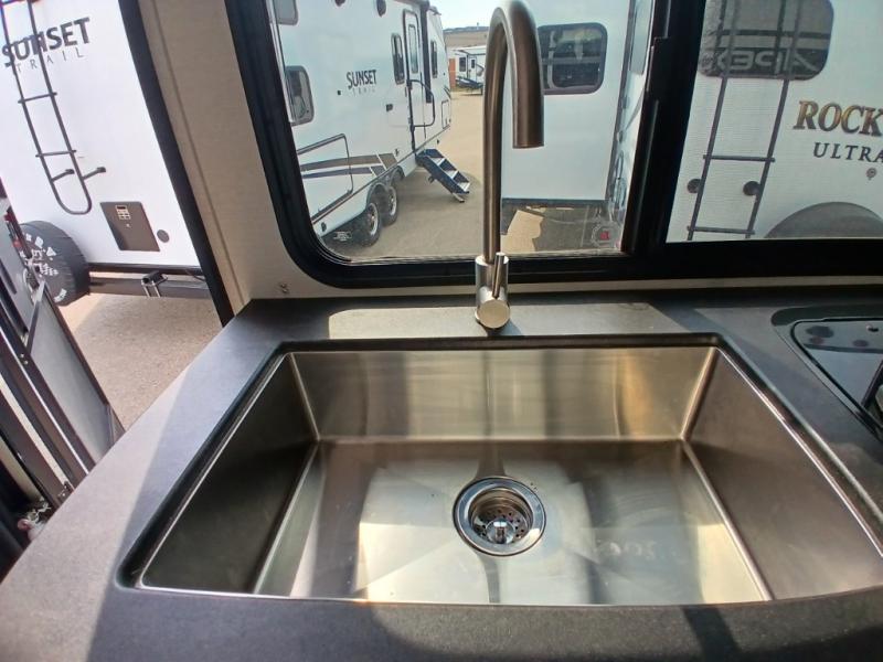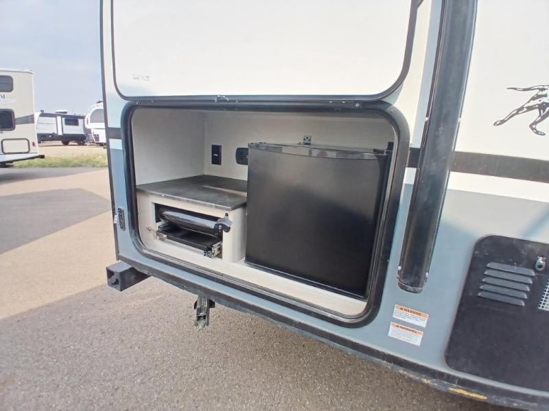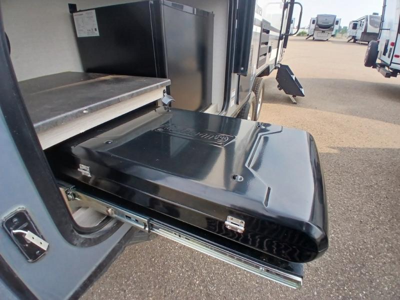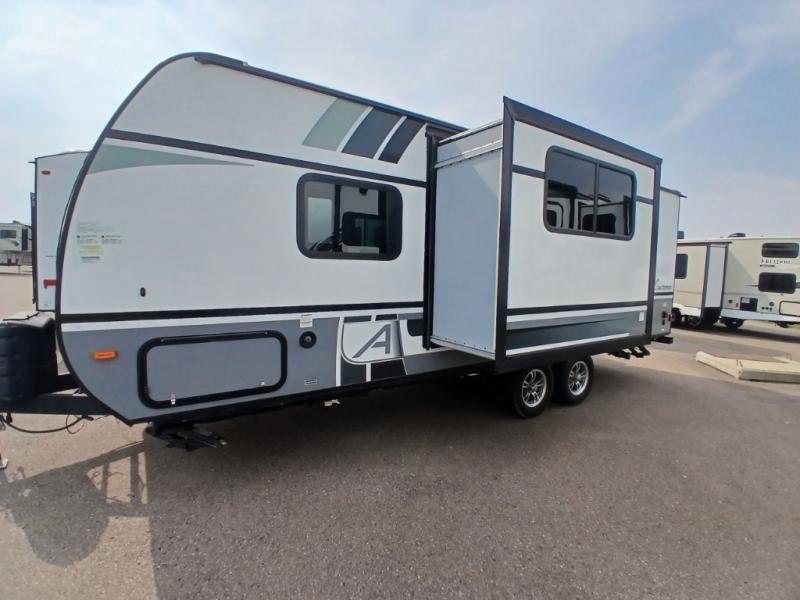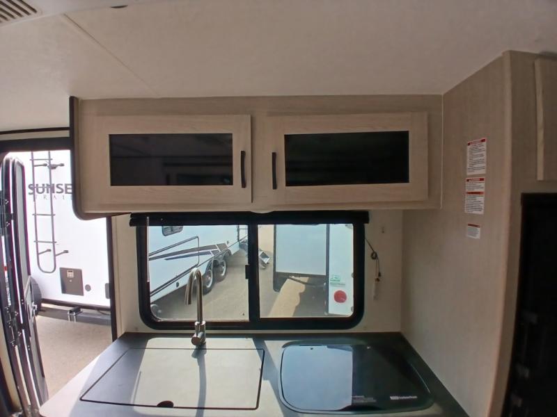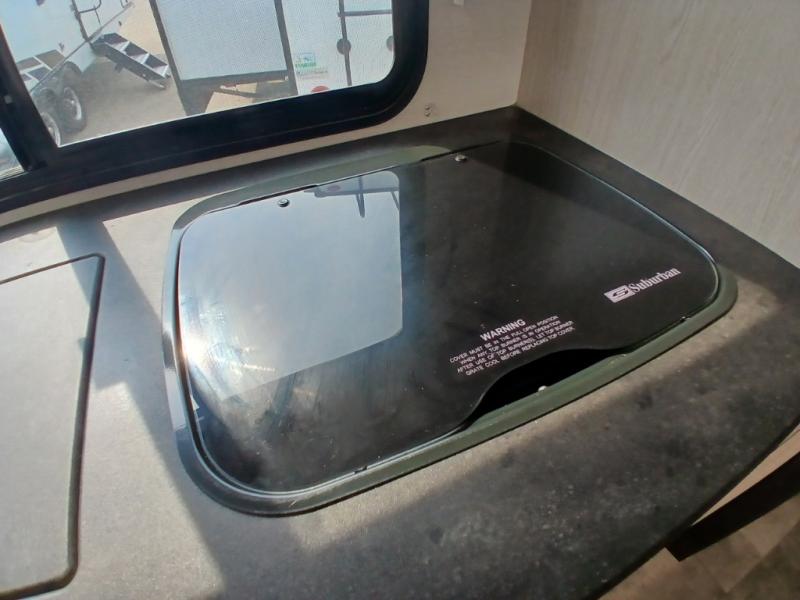 You and a few friends or family members can camp comfortably in this travel trailer! It features a front queen bed with wardrobes on either side to keep your clothes out of the way or you can switch it out for the optional Murphy bed for more versatility. Two others can sleep on the rear corner upper double bed and lower flip up double bed. After you have fried up some eggs on the two burner cooktop and heated up a piece of banana bread in the microwave, you can head to the booth dinette slide to enjoy it. There is even a pantry to store your coffee grounds and snacks. Now that your bellies are full, you can freshen up in the rear corner bathroom with the tub/shower.