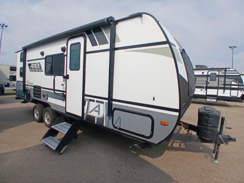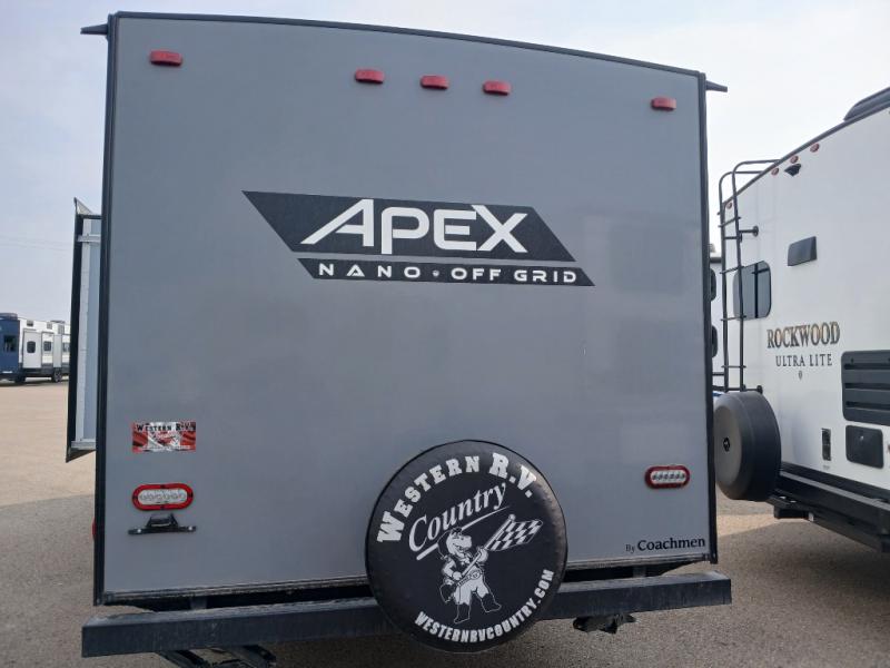 You will find comfort, convenience, and a sturdy construction with each of these Coachmen RV Apex Nano travel trailers! They are held together with an aluma-cage construction, vacuum-bonded Azdel fiberglass walls, an I-beam chassis, and a roof membrane with Dicor Crossflex, plus the powder coated frame is corrosion resistant. The Dexter E-Z lube axles and nitrogen filled radial tires will help you arrive safely. The mandatory Nano package comes with many features to make camp life better like magnetic baggage door catches, outside speakers, a digital TV antenna with cable hook-ups and WiFi capability, and a hot/cold outside shower to keep the dirt outside where it belongs. Come find the perfect model that fits your needs today!