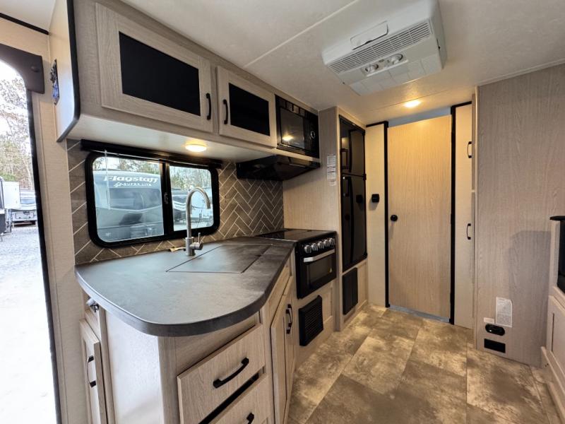 Lightweight living and camping is found with the Apex Ultra-Lite travel trailers by Coachmen. These eco-friendly units are made to last thanks to the Azdel composite sidewalls, the laminated aluminum floor, and the vacuum-bonded laminated crowned roof. Lippert axles and nitrogen filled radial tires make towing easier than ever, plus there is a friction hinge entrance door, a 100-watt solar panel with a 10 Amp control charger, and slam latch baggage door catches for easy unloading. Some of the interior comforts you'll fall in love with are the one-piece seamless edge countertops, the hard valances with night shades throughout, the matte black hardware, and the residential comforter. The Apex Ultra-Lite trailers also include USB ports, a digital TV antenna with cable hook-ups and Wi-Fi capability, and an AM/FM stereo with Bluetooth to ensure you'll never go bored on rainy camp days!