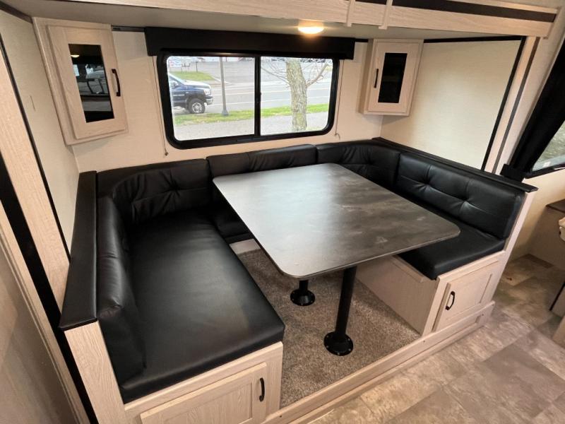 Easy to tow so you can get up and go! The U-shaped dinette slide will not only be a favorite spot to dine and play game, but will also double as additional sleeping space. There is a full interior kitchen, plus an outdoor kitchen for breakfast outdoors. When you're ready to come in for the night, head to the spacious full rear bath to clean up, and the front bedroom will make this unit feel more like home with its queen bed and dual wardrobes!