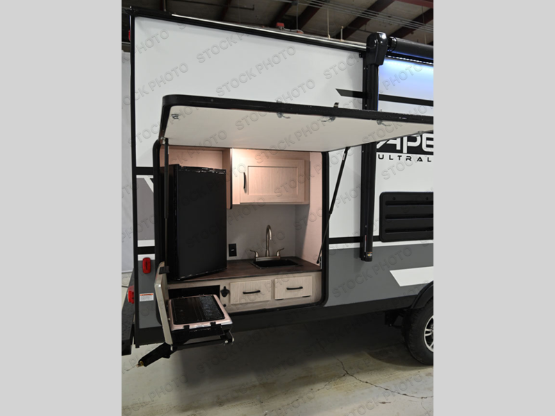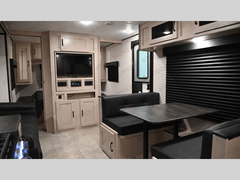 Escape the city life for relaxing weekend in this spacious travel trailer. A large slide out provides plenty of space to relax on the sofa or dine at the booth dinette. There is an entertainment center here with a 32" LED TV if you love to watch movies at night, and the full rear bath will allow you to stay clean throughout your trip. The chef can choose to cook indoors on the three burner cooktop, or head outdoors to cook on the outside kitchen! And when it's time to turn in for the night you'll have your own private bedroom up front with a queen bed and dual wardrobes, and any guests you have can sleep on the sofa and booth dinette!