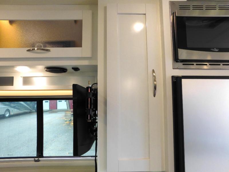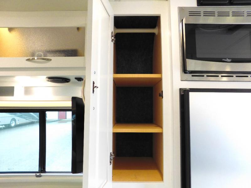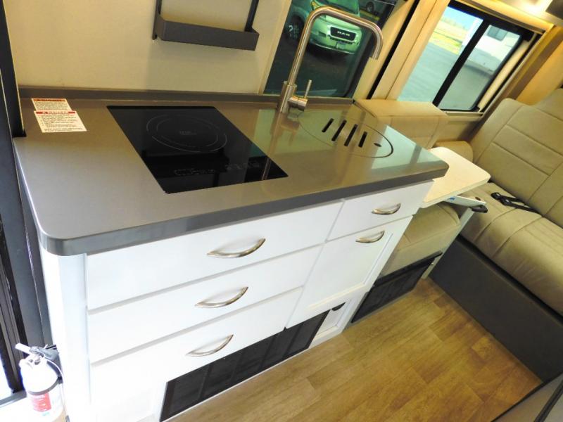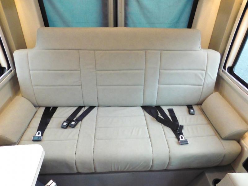 This all-wheel drive coach is perfect for trips near and far. Once you park, you can swivel the captain's seats around to enjoy lunch at the removeable table, and you can freshen up in the convenient wet bath before heading out to stretch your legs. There is a two burner LP cooktop, a round sink, plus a Nova Kool compressor refrigerator for your perishables. The two jump seats and rear power sofa will convert to a comfortable bed at night, and the lagun table in between will allow you to play a game of cards before bed. And don't worry about storage space since this model includes overhead compartments and a wardrobe to keep your clothes wrinkle-free!