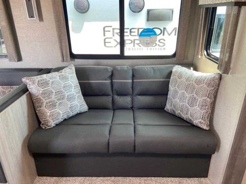 With any Catalina Legacy Edition travel trailer by Coachmen, there is an enclosed, fully sealed underbelly to protect against road debris and help control the interior climate, a seamless Alpha roof membrane, a platinum aluminum exterior, a smooth HD aluminum radius front, and polished HD aluminum fender skirts, plus upgraded aluminum wheels. The interior includes seamless Thermofoil countertops throughout, an under-mount farm style sink with residential kitchen faucet with pull down sprayer to easily clean the fruits and veggies as well as the dishes, full length kitchen drawer guides, and an All-In-One monitor panel system.