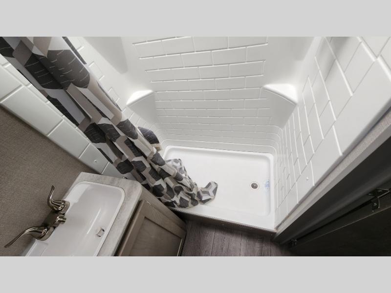 With any Catalina Legacy Edition travel trailer by Coachmen, there is an enclosed, fully sealed underbelly to protect against road debris and help control the interior climate, a seamless Alpha roof membrane, a platinum aluminum exterior, a smooth HD aluminum radius front, and polished HD aluminum fender skirts, plus upgraded aluminum wheels. The interior includes seamless Thermofoil countertops throughout, an under-mount farm style sink with residential kitchen faucet with pull down sprayer to easily clean the fruits and veggies as well as the dishes, full length kitchen drawer guides, and an All-In-One monitor panel system.