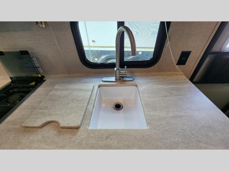 With any Catalina Summit Series 7' by Coachmen RV, you can create an easier adventure with the versatility and simplicity of the shorter lengths and lighter weights! Each includes a premium exterior graphics package, a smooth HD aluminum radius front, polished HD aluminum fender skirts, oversized off-road fender flares, and Dexter EZ lube axles with leaf spring suspension. The exterior offers a heavy duty standard tongue jack, a diamond plate rock guard to protect against road debris, exterior RG-6 coax cabling and satellite prep, rear view camera prep, and flush mount baggage doors with radius corners for your outdoor gear. Inside, you will have a stereo with Bluetooth and USB charge port, interior ceiling speakers, seamless Thermofoil countertops throughout, an under-mount farm style sink for easy cleanup, a Slim Line range hood, and flex ducted cabinet/wall heat. It's time to choose an affordable and maneuverable single axle trailer today!