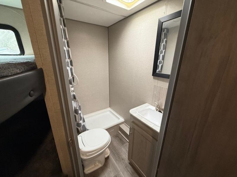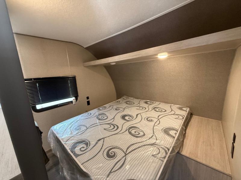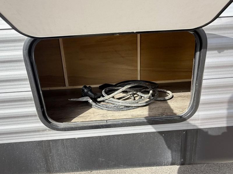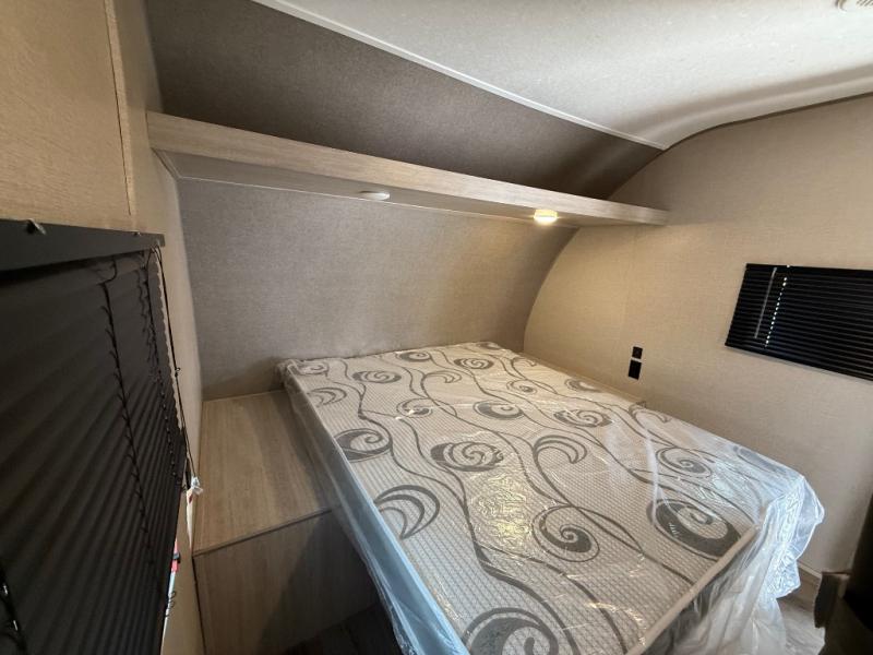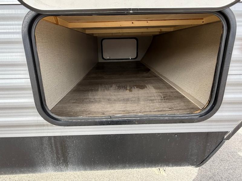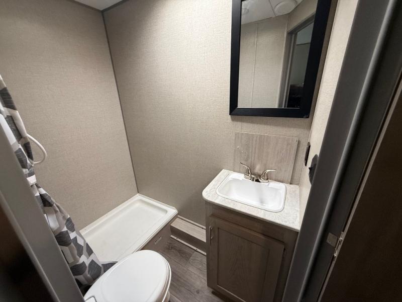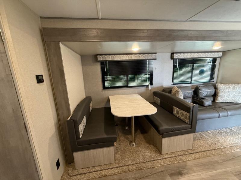 This is the perfect mid-size travel trailer for you and your family! The 49" x 70" double over double bunk beds offer a comfortable sleeping space for the kids and you will have your own private sleeping space with the 60" x 74" queen bed in the front private bedroom. Freshen up each morning in the rear corner bathroom with the tub/shower which has a skylight above it for more headroom and natural lighting. You can prepare your best home cooked meals with the three burner cooktop and 10 cu. ft. refrigerator then enjoy them together at the booth dinette. The sofa has cupholders for you to set your drink while you watch your favorite movie with the entertainment center. Don't leave any of your outdoor gear behind either thanks to the front pass-through storage area and the exterior outside storage area!