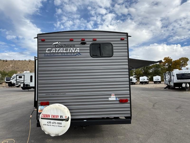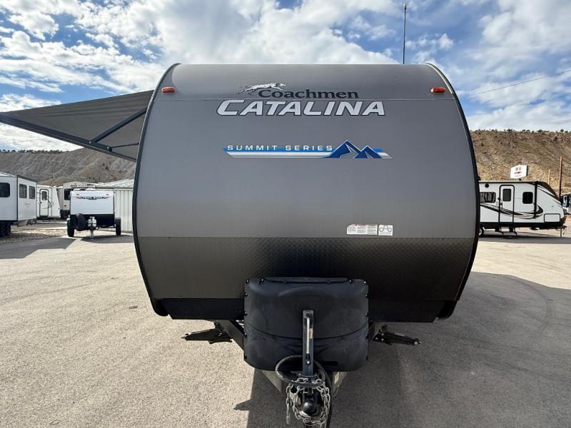 Lead your family to the great outdoors with the Coachmen RV Catalina Summit Series 8 travel trailer! The cambered structural steel I-beam frame, fully decked walk-on roof, and Darco subfloor protective wrap/enclosure will hold up through every adventure. A 35,000 BTU auto-ignition furnace will heat your unit up during the cooler months and the R-7 insulation throughout ensures the heat stays inside. With four free packages included, you will have even more conveniences like USB ports in the kitchen, interior ceiling speakers to crank up the tunes, and an all-in-one monitor panel. G20 tinted privacy windows let you view your beautiful scenery while preventing others from looking inside from the outside. Don't waste another minute, come see why you need this travel trailer!