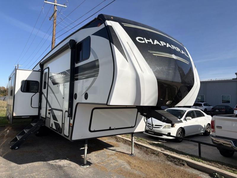 Comfort, convenience, and an easy haul is what you will find with each one of these Coachmen RV Chaparral Lite fifth wheels! Their aluminum framed sidewalls with rot proof Azdel composite and Turn Tec engineering make them easy to tow with just a half-ton pickup truck. The durable, textured silver metal radius skirting and the UV-resistant, white gel-coat exterior sidewalls panels will protect your unit for years to come. The Road Armor suspension by Trail Air comes with heavy duty shackles and wet bolts so you can be sure it will hold up through every adventure. You will feel right at home inside with the Congoleum carefree resilient sheet flooring, the USB charging charging ports, and the bath suites. Plus, there is an outside shower with hot and cold water to keep the dirt outdoors where it belongs. Come find your favorite model today!