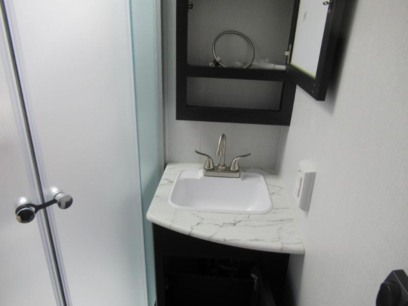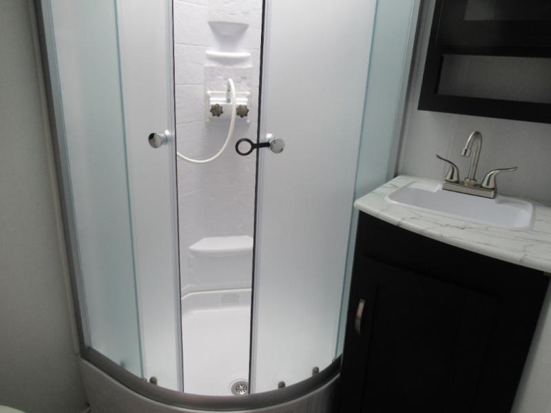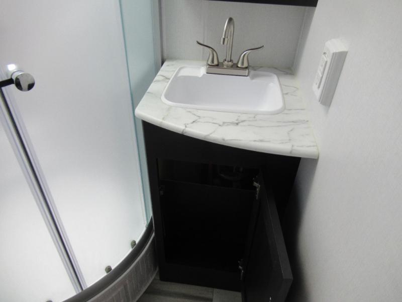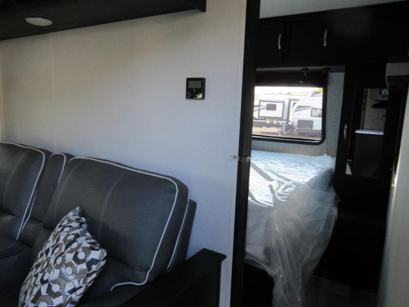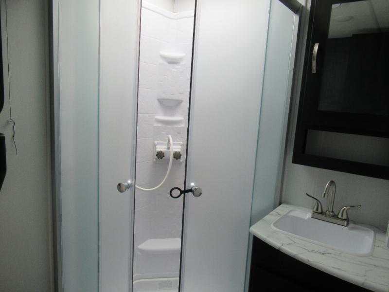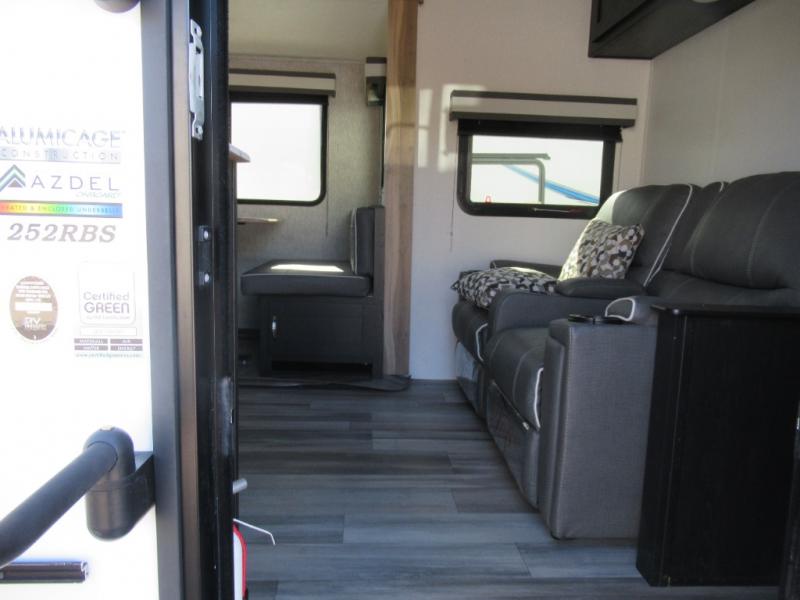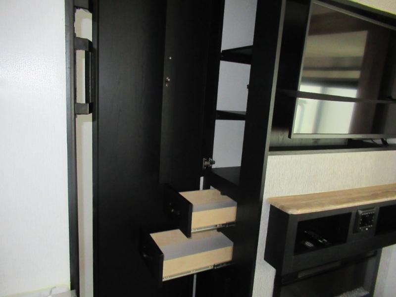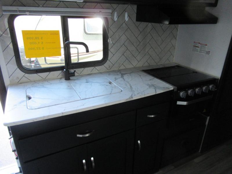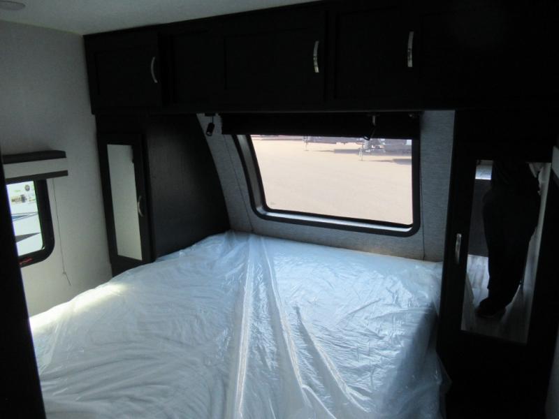 This travel trailer will feel just like home with its private bedroom and spacious full rear bath. You will appreciate the vaulted under-bed storage for extra blankets, shoes, and luggage, plus there are dual wardrobes on either side of the bed for your book and glasses. Get comfortable in the main living area on the sofa or at the booth dinette, or you can choose the optional theater seat or optional hide-a-bed sofa in place of the standard sofa. The chef of your group can prepare meals indoors or outdoors on the full camp kitchen, and check out the large 20' power awning with LED lights that will provide protection from the elements.