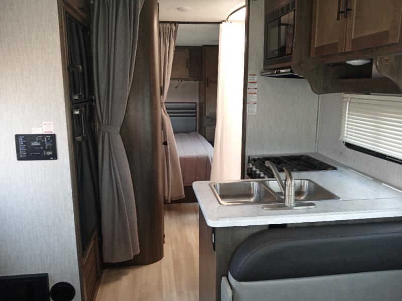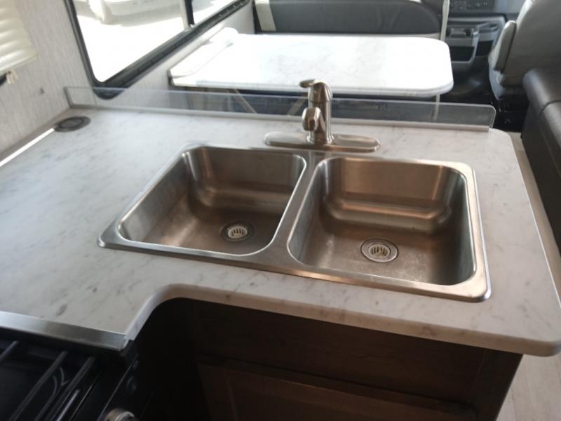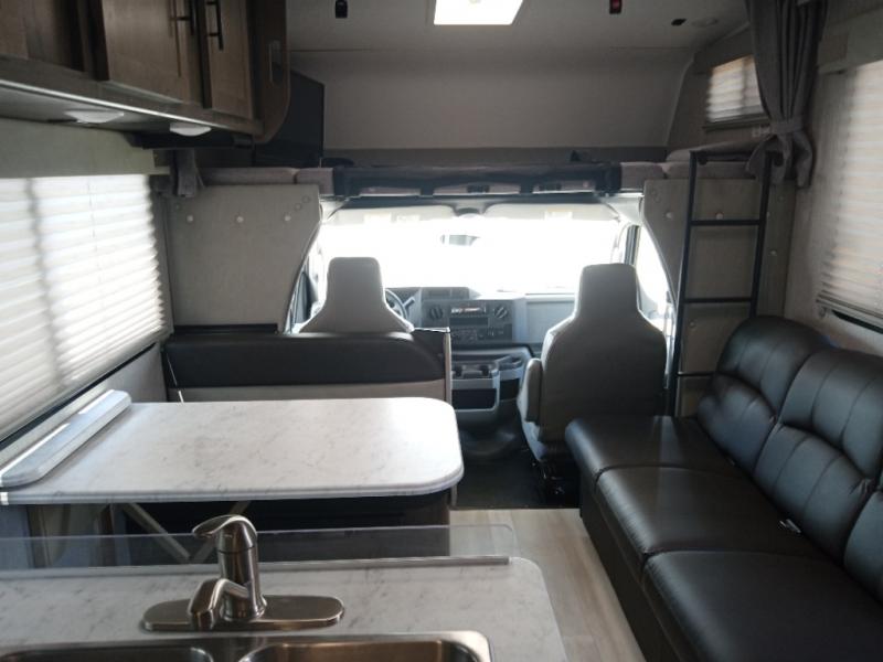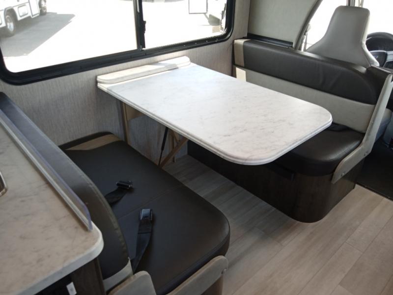 With each Leprechaun Class C gas motorhome by Coachmen you will enjoy "better" interior appointments, like the premium hardwood cabinet doors and drawer fronts, the one-piece thermofoil countertops, and the premium vinyl flooring. You will sleep soundly each night on the upgraded mattress, and staying clean will be easy with the premium showerhead and faucet in the bath. These models include reclining captain's seats, cruise control, and a rear backup camera so you can easily get in and out of the campground. The Leprechaun is constructed with Azdel composite sidewalls, CrossFlex PVC, polyester reinforced roof material, and vacu-bond laminated walls, roof, and floor for a durable motorhome made to last.