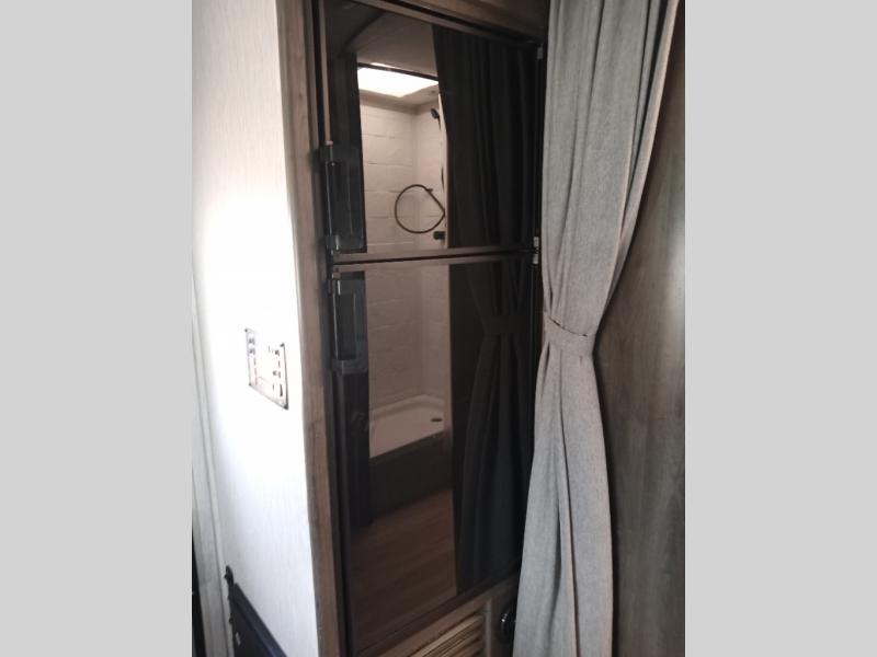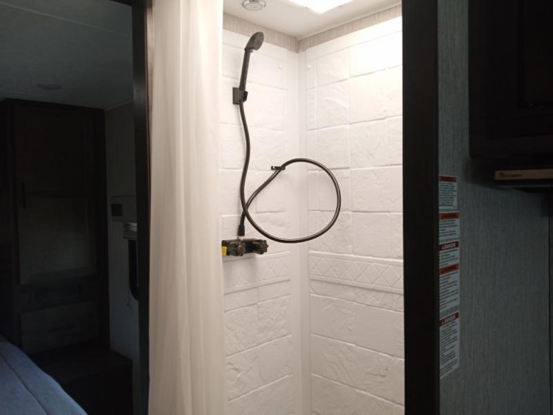 Have you been looking for privacy when sleeping and getting dressed in your next coach? This Leprechaun Class C gas motorhome offers a private rear bedroom with a walk-around queen bed, a bunk over the cab for the kids, and furniture that doubles as sleeping accommodations for guests. The private toilet and sink with the shower just across the hall allow two people to freshen up at once. Your family will love having a sofa and a booth dinette for relaxing, eating meals, playing games, or enjoying one another's company throughout your trip.