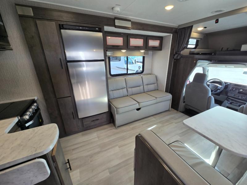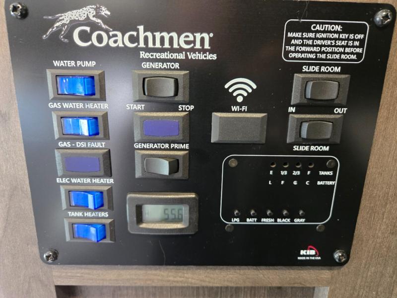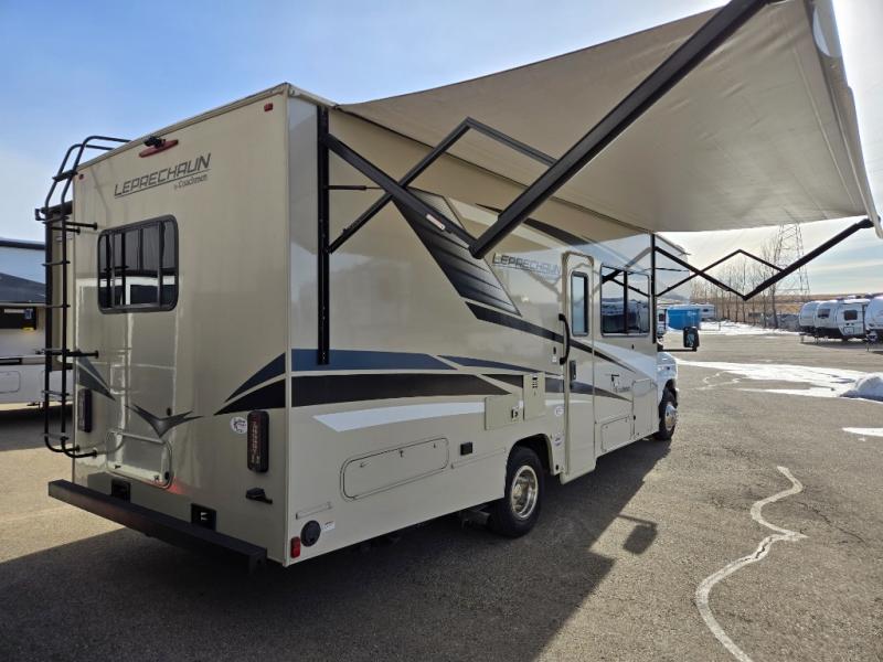 For premier features and an all-around premier coach, choose the Coachmen Leprechaun Premier Class C gas motorhome! You will appreciate having high-class interiors styled with modern décor. There are premium hardwood cabinets, premium vinyl flooring, and USB charging ports. The construction is created with a CrossFlex PVC polyester reinforced roof material, full aluminum-framed walls, roof, and floor structures, and high-gloss, color-infused HD fiberglass walls with graphics package. You'll also have a power awning with LED lights to use while outside gathering with friends, and the Roto-cast rear warehouse storage compartment can keep your belongings secure.