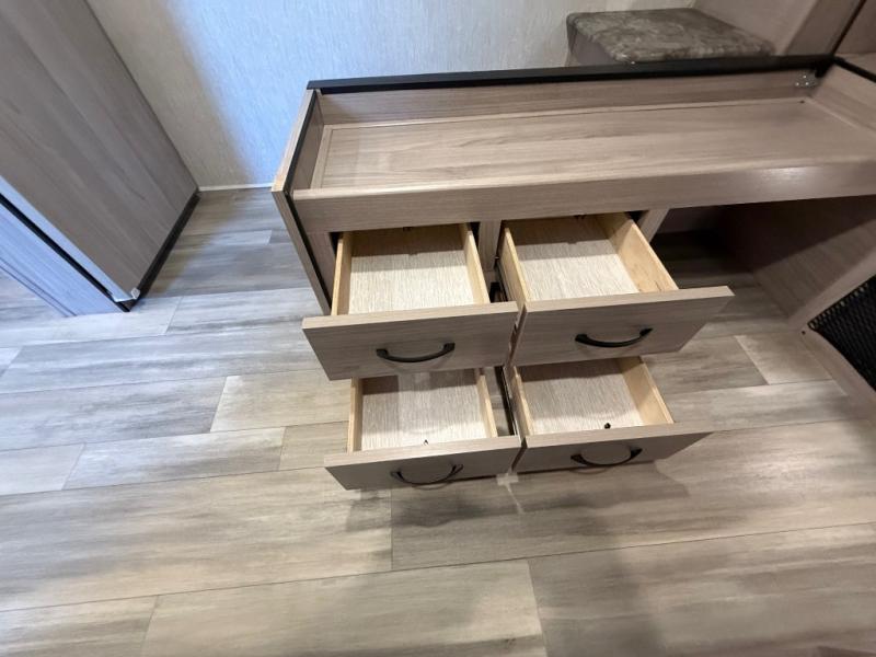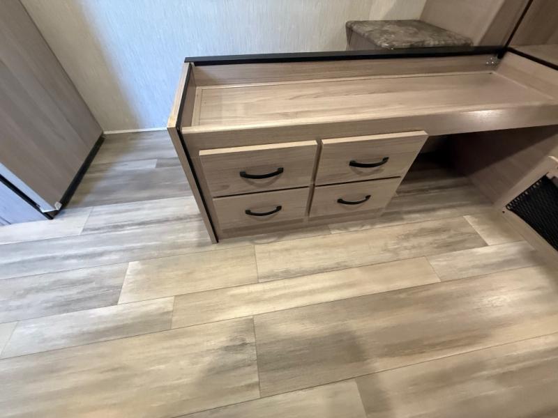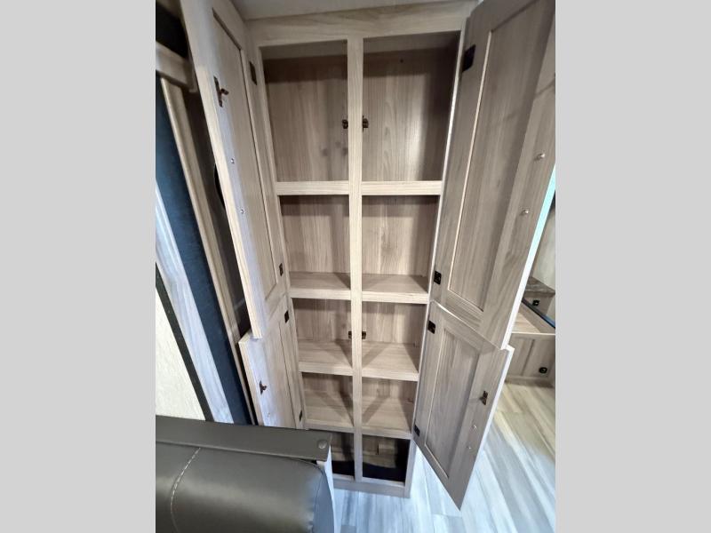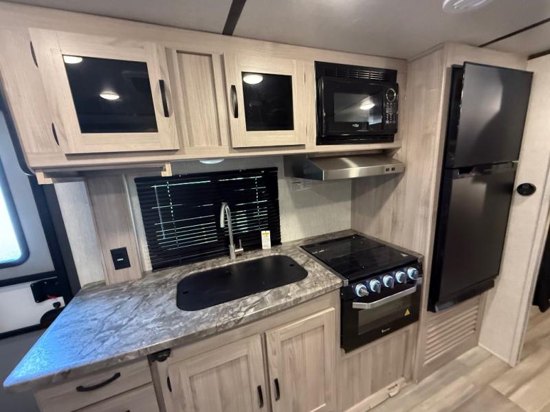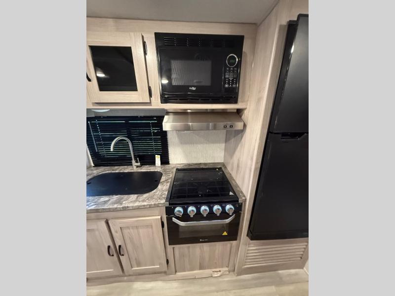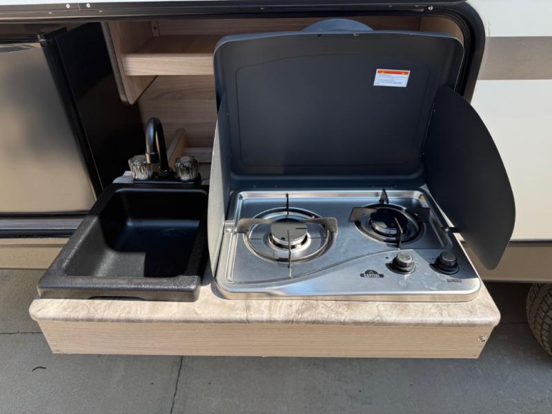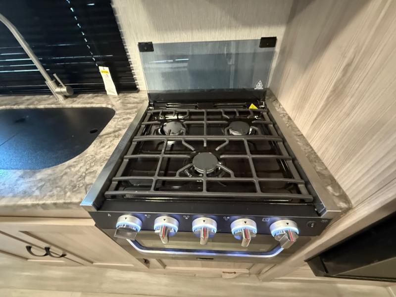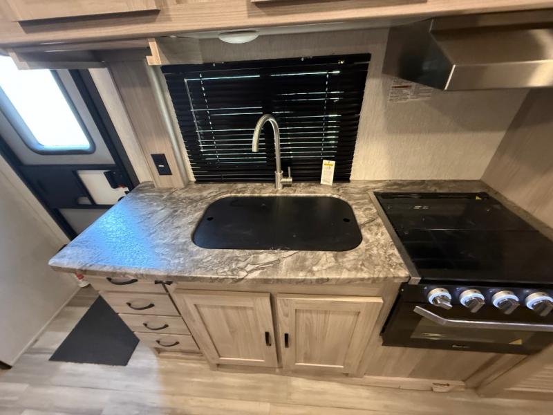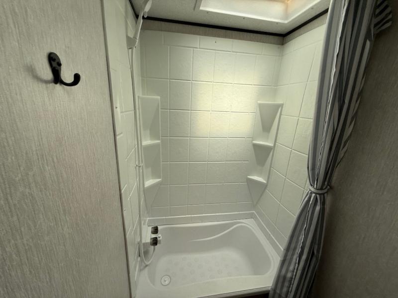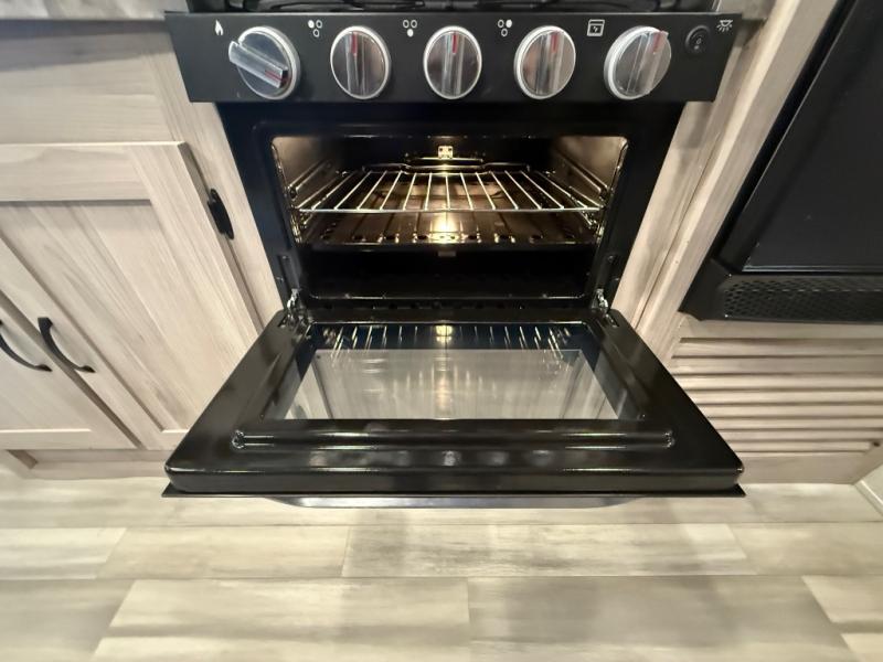 You can't go wrong with this travel trailer in tow! Once you arrive at the campground, set up the 20' power awning, then make a quick lunch on the exterior camp kitchen before heading out on a trail. There is a full bath inside that will allow you to clean up after your adventures, and sleeping space for eight between the double-size bunks, the queen bed, plus the U-shaded dinette within the slide out. After you've rested, you may want to watch a movie on the LED TV, and don't forget to grab your snacks from the pantry!